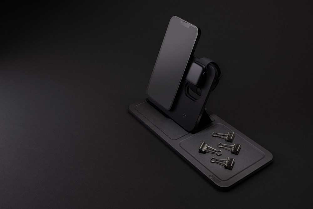 Luxuriöses und faltbares 3-in-1-Ladegerät mit Schreibtischablage aus RCS recyceltem PU.... mehr