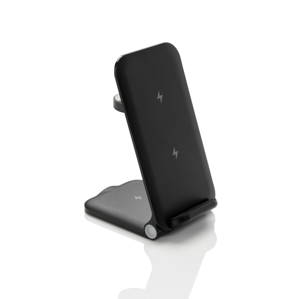 3-in-1-Ladestation für kabellose Geräte aus RCS recyceltem ABS. Gesamtanteil an recyceltem... mehr
