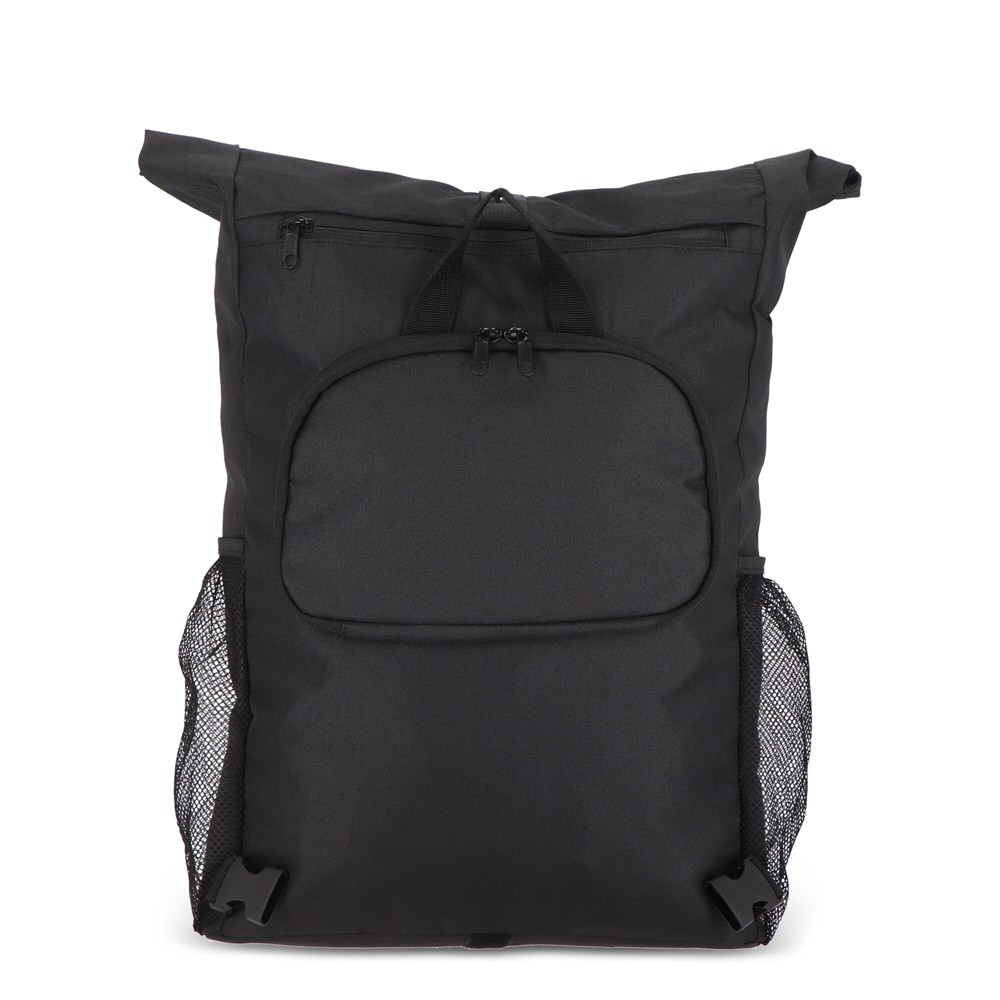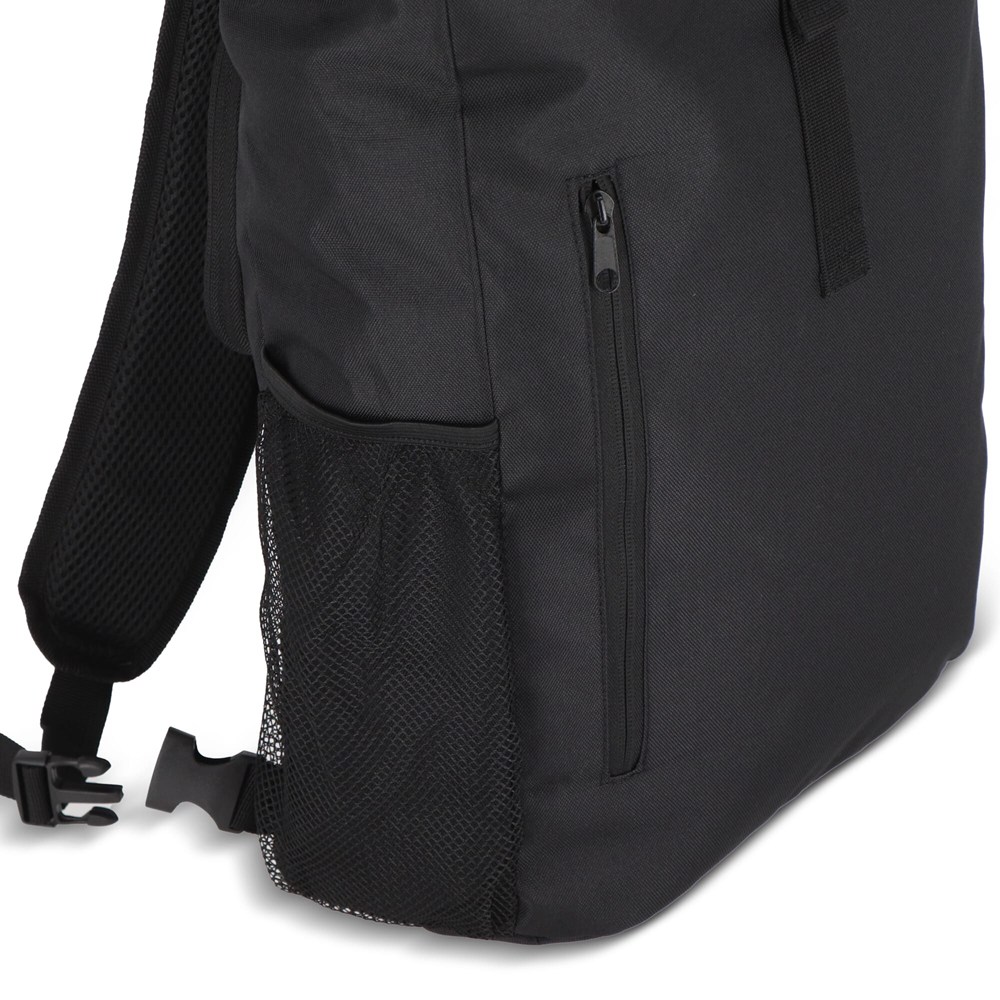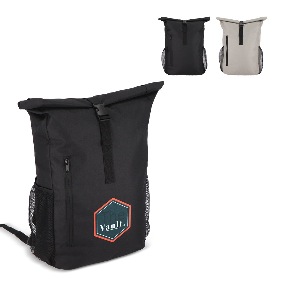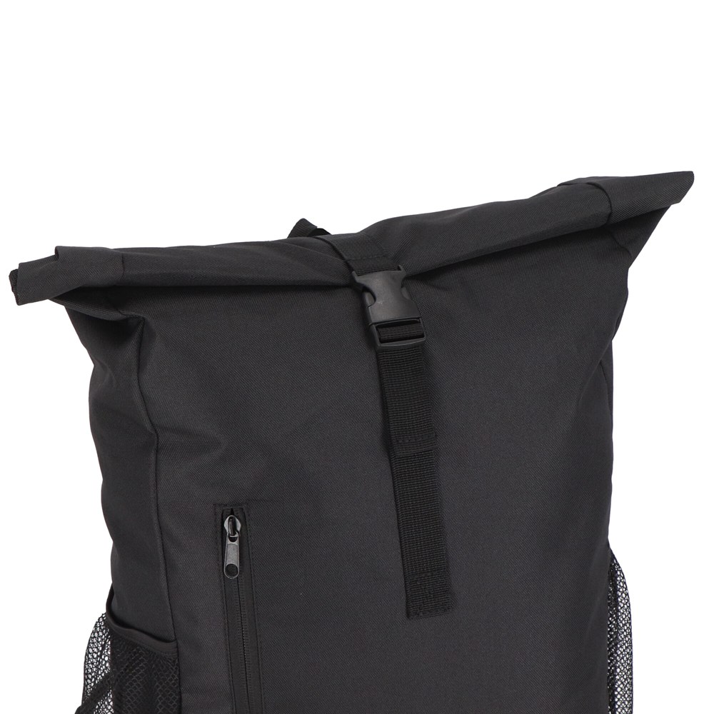 Diese Fahrradtasche im trendigen Rolltop-Design ist aus recyceltem PET hergestellt. Sie verfügt über eine Reißverschlusstasche oben und eine Vordertasche, einen Griff oben, verstellbare, gepolsterte, abnehmbare Schultergurte und zwei Clips, um die Tasche beim Radfahren am Fahrrad zu befestigen. Die beiden seitlichen Netztaschen sind ideal für Wasserflaschen oder Regenschirme.