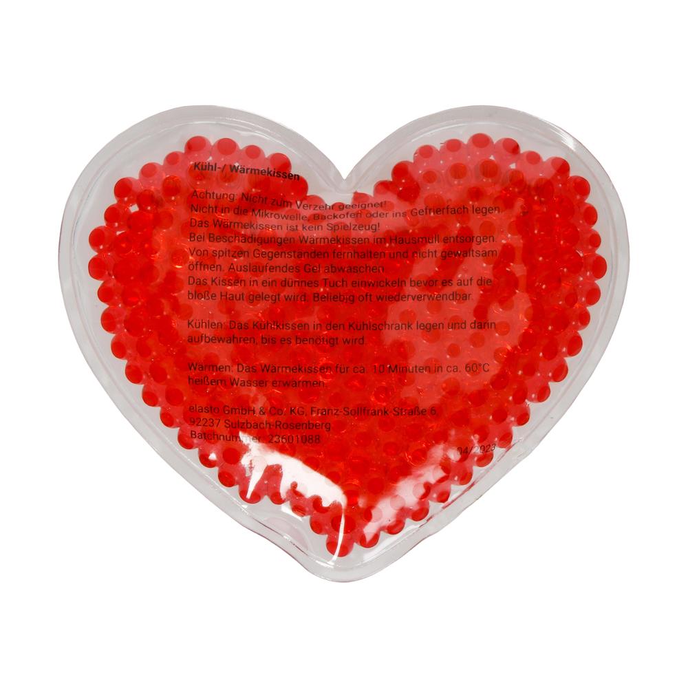 Dieses mit Gelperlen gefüllte PVC-Kissen in Herz-Form fühlt sich sowohl gekühlt als auch wohlig warm einfach gut an. Zum Kühlen einfach im Kühlschrank aufbewahren bis es benötigt wird. Für die Wärmefunktion für ca. 10 Minuten in 60°C warmes Wasser legen.