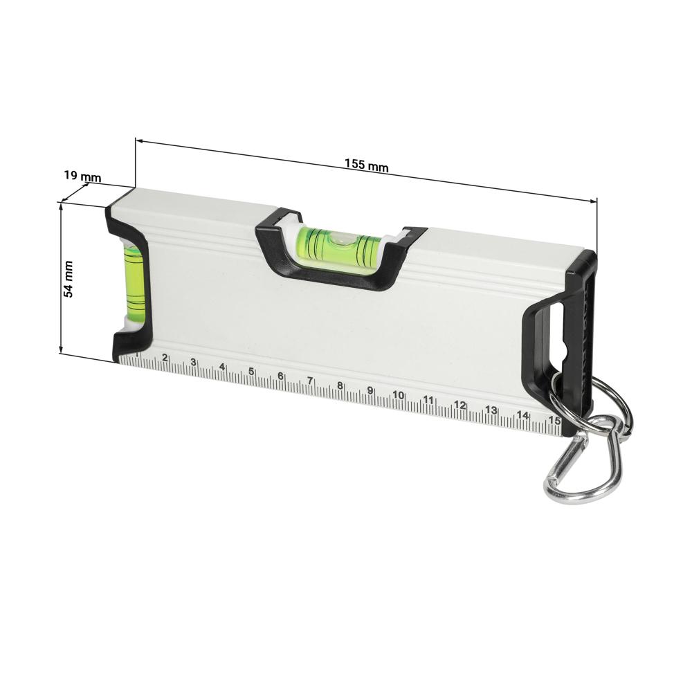 Die Wasserwaage "Misura" ist das ideale Werkzeug für präzise Messungen und vielseitige Einsatzmöglichkeiten. Gefertigt aus langlebigem Aluminium, bietet sie Robustheit bei einer handlichen Größe von 15,5 x 1,7 x 5,2 cm. Die gelbe Flüssigkeit sorgt für eine klare und gut ablesbare Anzeige. Dank der magnetischen Funktion kann die Wasserwaage problemlos an Metallflächen befestigt werden. Der integrierte Karabinerhaken ermöglicht ein einfaches Mitführen, während die zusätzlichen Maßangaben das Werkzeug zu einem unverzichtbaren Begleiter für alle Bau- und Handwerksprojekte machen.