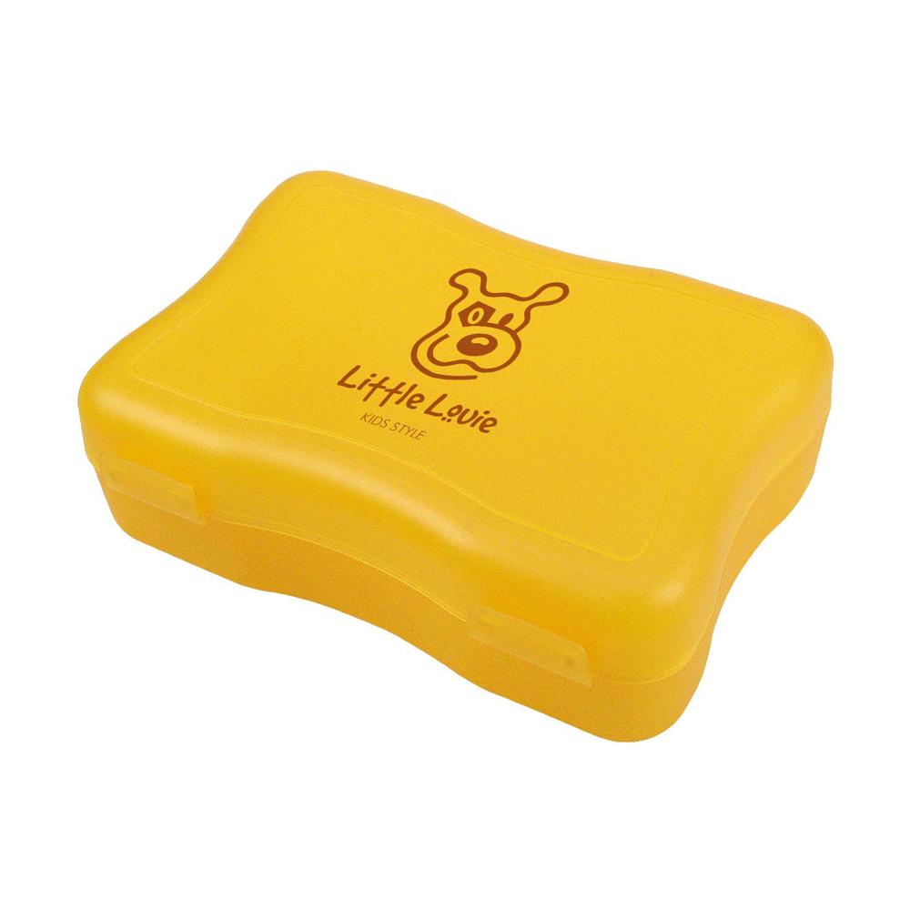 Eine praktische Brotzeitbox mit Schwung und 2 Klickverschlüssen. IMould-Veredelung möglich.