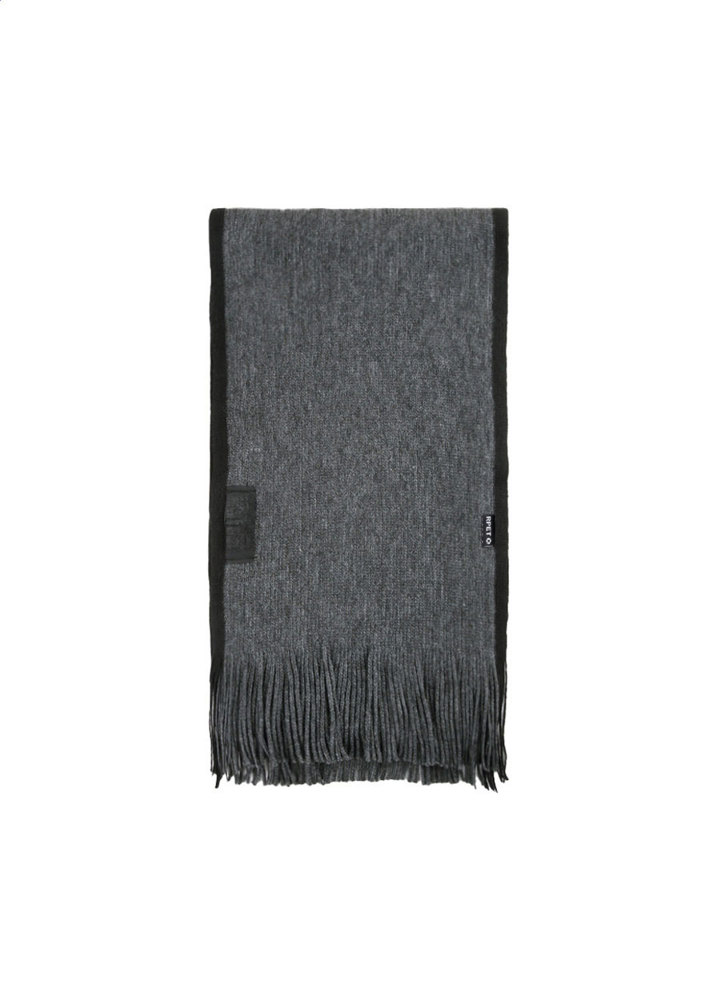 Eleganter Schal aus RPET Polyester mit RPET-Label, einzeln in schwarzer Geschenkbox.
