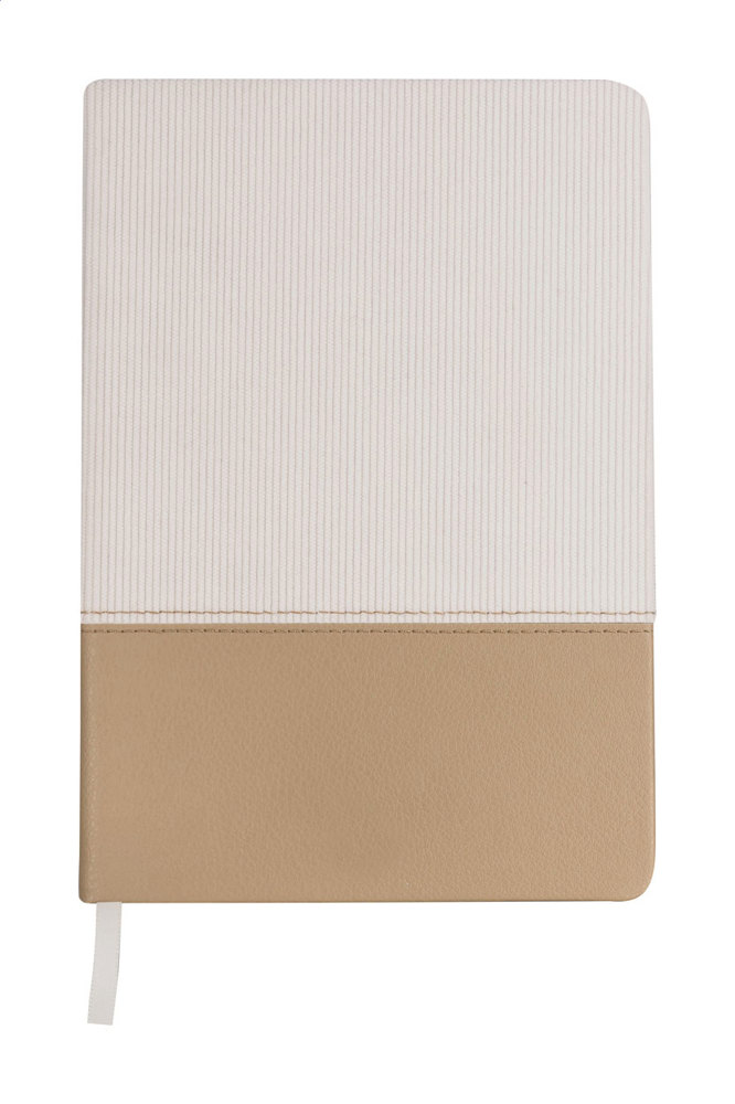 A5 Notizbuch mit Umschlag aus strukturiertem Polyester und recyceltem Kunstleder, Lesezeichen und 80 linierten Seiten.