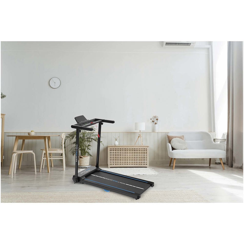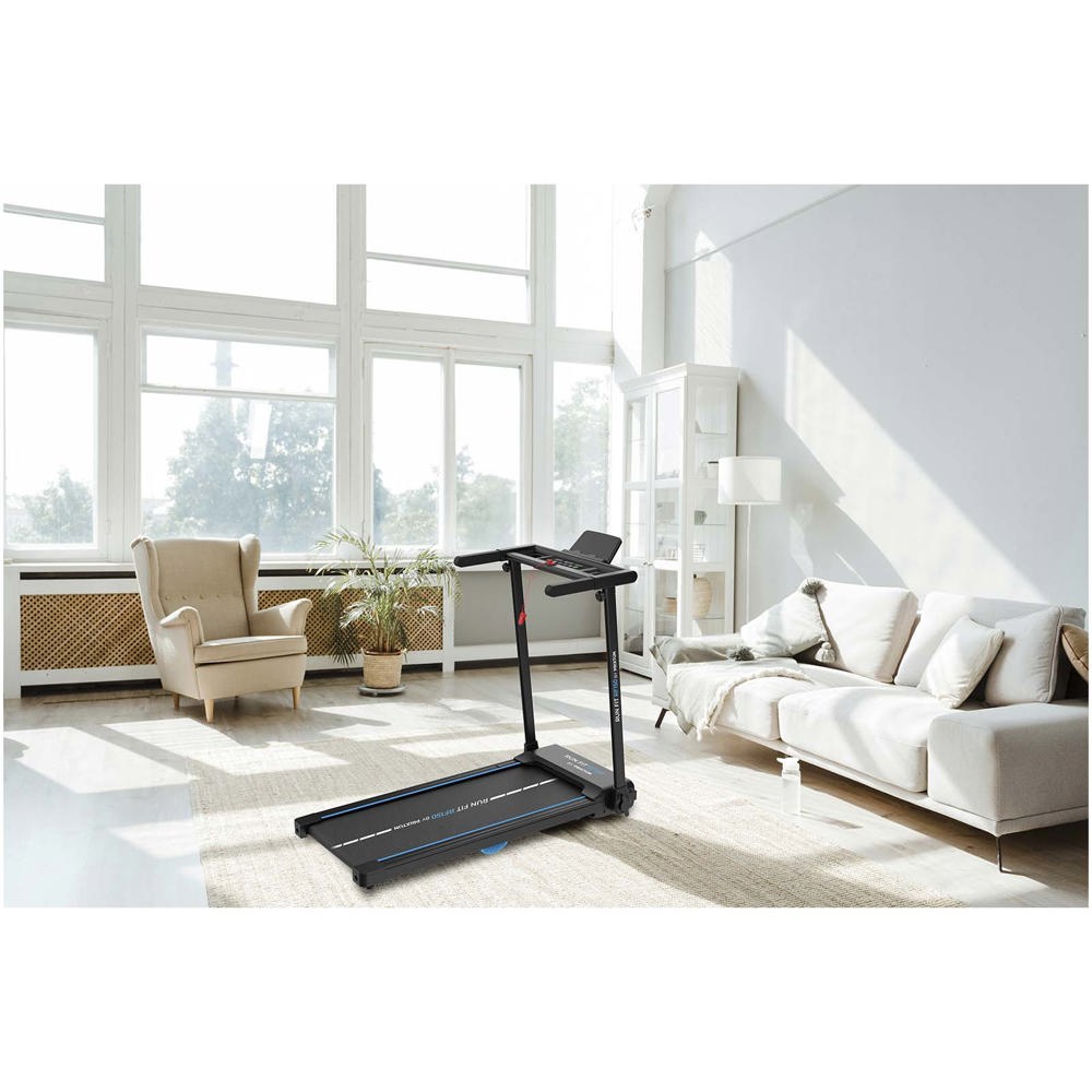 Das Laufband RF150 Run Fit ermöglicht ein komplettes Ausdauertraining bequem zu Hause. Mit einstellbaren Geschwindigkeiten von 1 bis 10 km/h und 12 voreingestellten Programmen können Sie Ihr Training ganz einfach an Ihr Fitnessniveau anpassen. Das ultrakompakte Design passt in jede Ecke Ihres Zuhauses und dank der integrierten Transportrollen können Sie das Gerät mühelos bewegen. Das LED-Display zeigt in Echtzeit Geschwindigkeit, Distanz, Kalorienverbrauch und Zeit an, damit Sie Ihre Ziele nicht aus den Augen verlieren. Dank der praktischen Halterung für Ihr Tablet oder Smartphone können Sie Ihre Lieblingsinhalte während des Trainings genießen, was das Training noch interessanter und angenehmer macht.