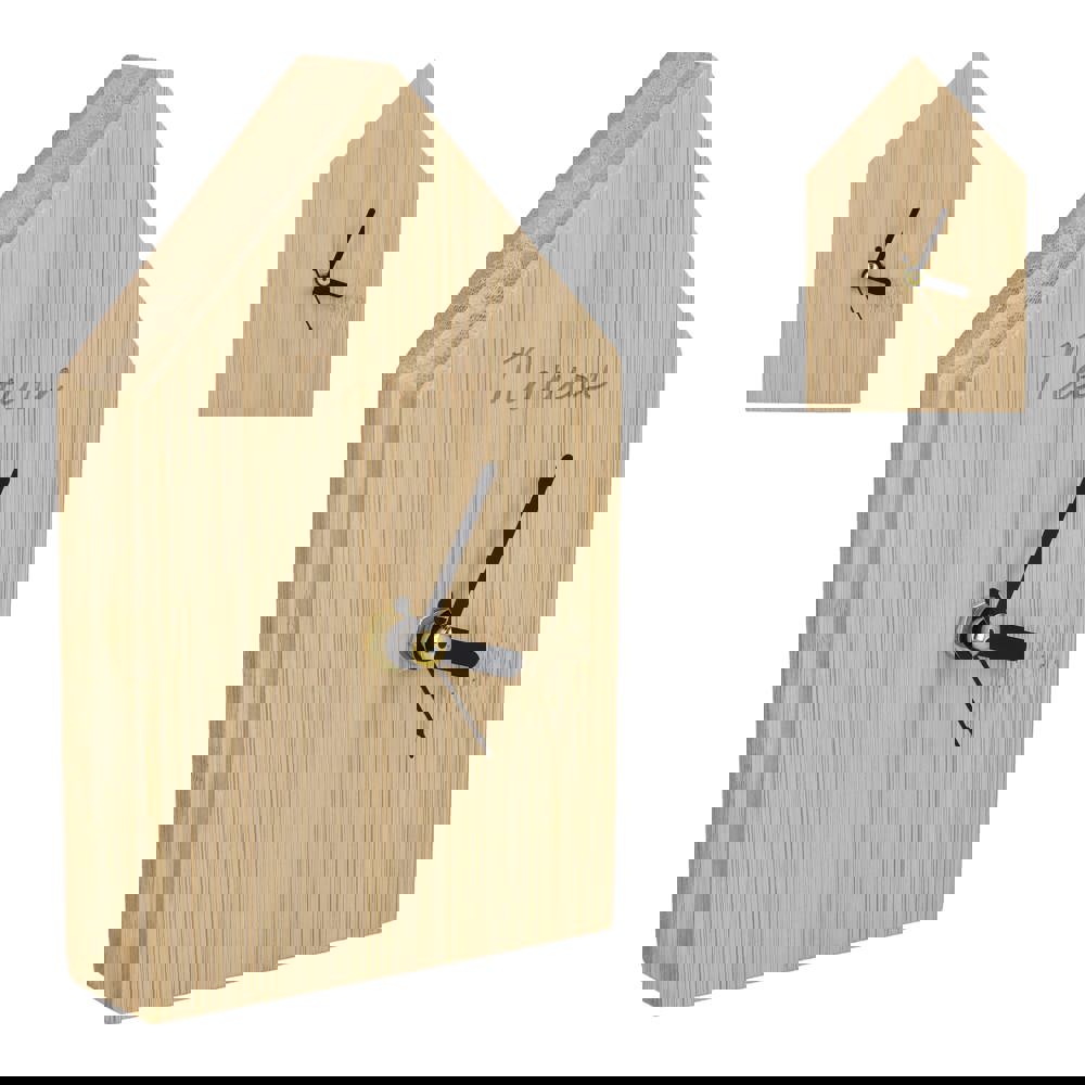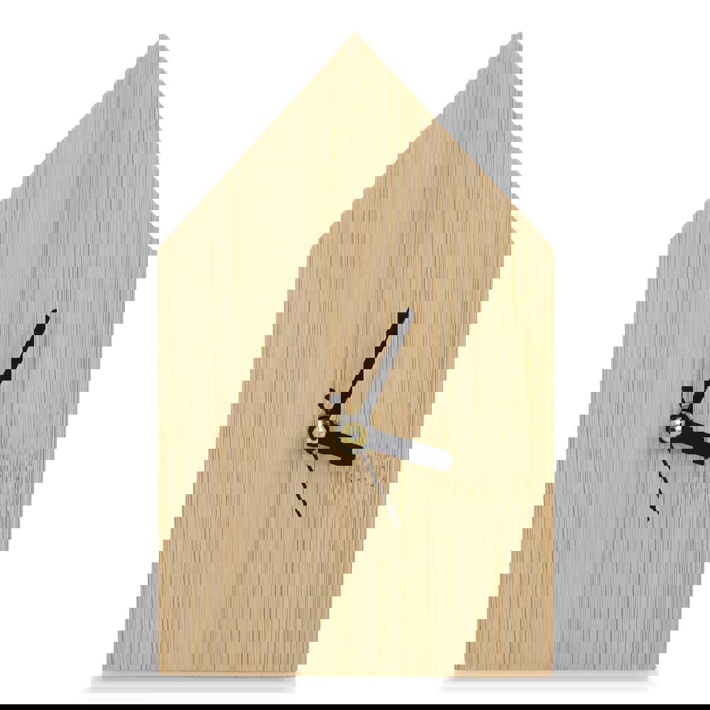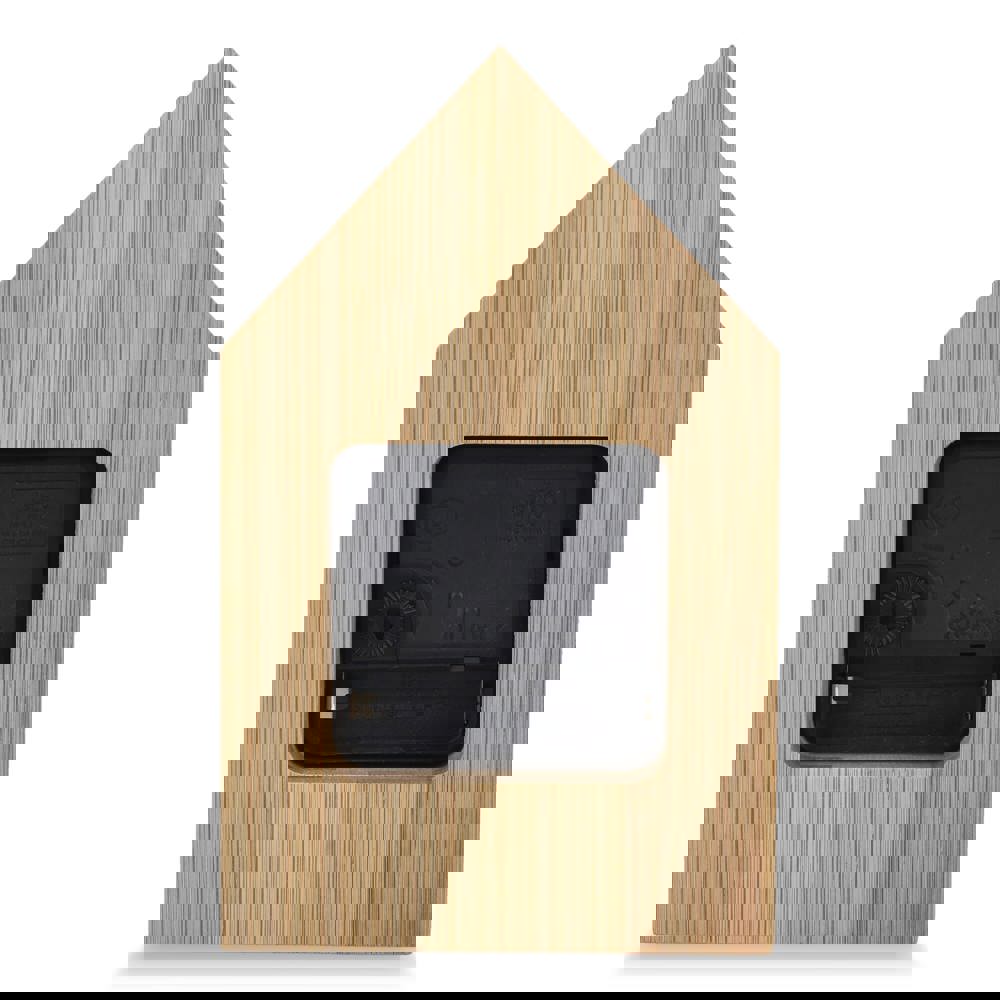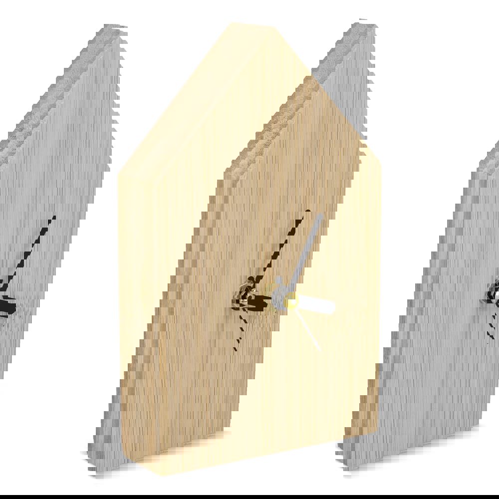 Die Schreibtischuhr Homestead vereint ein charmantes, hausförmiges Design mit einer Bambusoberfläche. Sie bringt gemütliche Atmosphäre in jedes Büro oder Zuhause. Mit Stunden-, Minuten- und Sekundenzeigern zeigt sie die Zeit präzise an. Inklusive Batterien und Geschenkbox.
