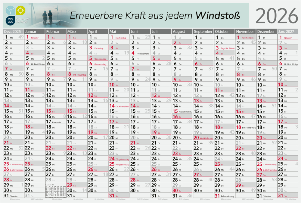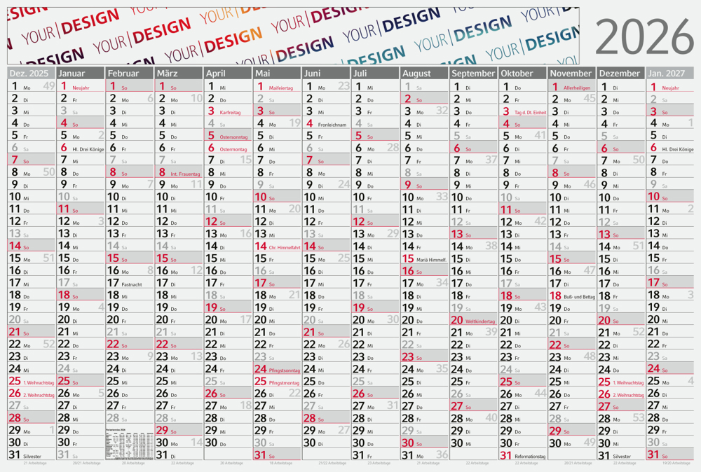 • Kalendarium: Deutsch 1sprachig; 14 Monate: Dez. – Jan.; Jahreszahl (anthrazit)