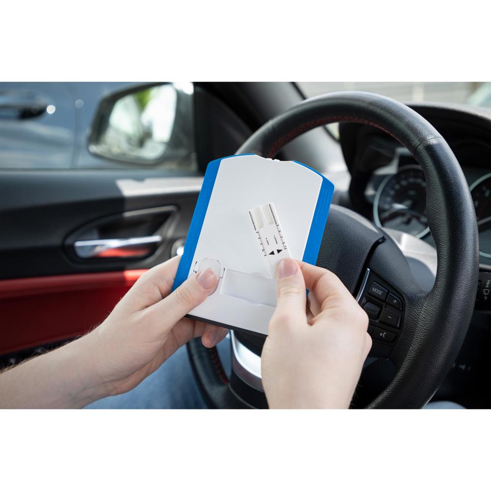 Kunststoff-Parkscheibe mit glatter Kratzkante, Kratzzacken und Wasserabstreifer. Auf der Rückseite befinden sich 2 standardmäßig befüllte Halterungen für einen Einkaufswagenchip und einen Reifenprofilmesser. Entspricht Paragraph 42 StVO. Einsetzbar von -10°C bis +60°C. Auf Anfrage auch in verschiedenen Sprachvarianten erhältlich.