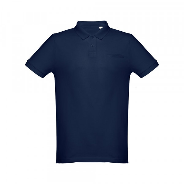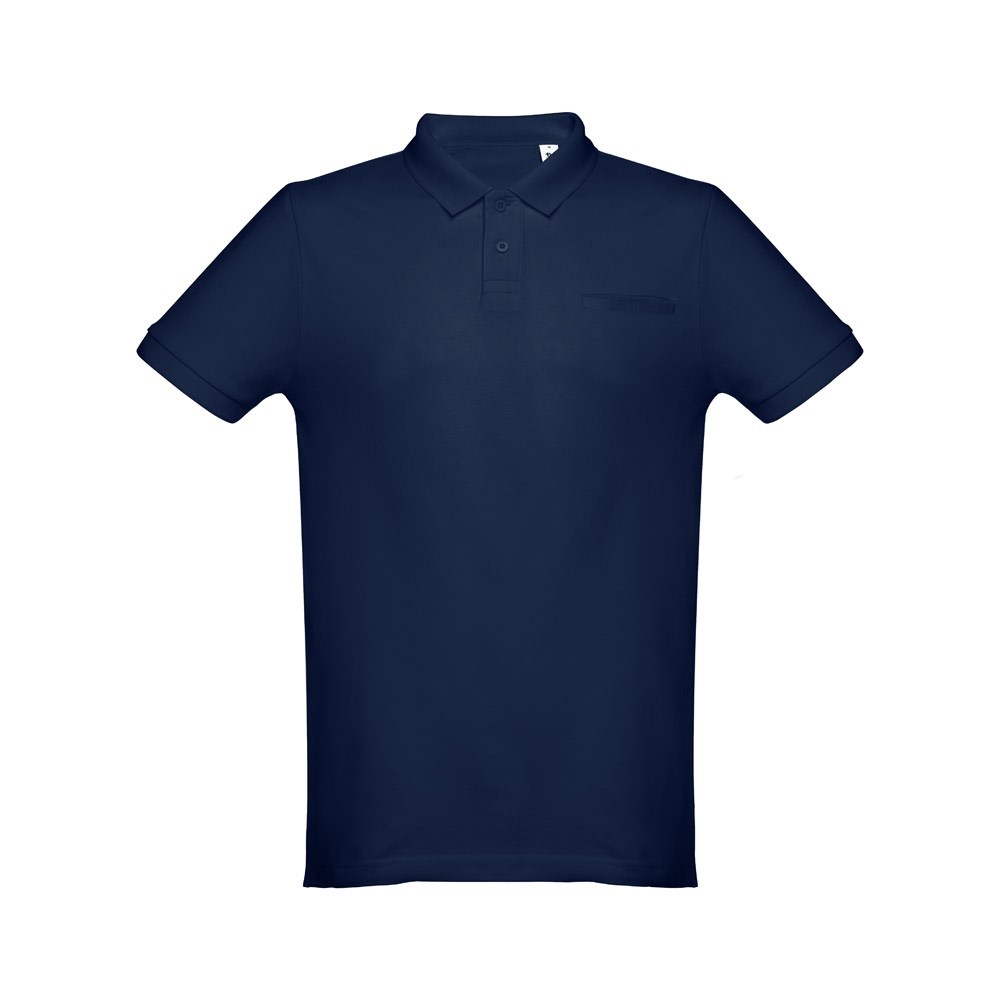 Herren Poloshirt aus Piqué Stoff 100% kardierter Baumwolle (195g/m²). Mit geripptem Kragen und Ärmelbündchen, einem Verstärkungsband am Kragen, verstärkte Knopfleiste mit 2 farblich abgestimmten Knöpfen und einem Ersatzknopf an der Innennaht. Unten mit seitlichen Öffnungen. Paspeltasche auf der Brust. Bei der Farbe 183 bestehend aus 85% Baumwolle und 15% Viskose. Größen: S, M, L, XL, XXL