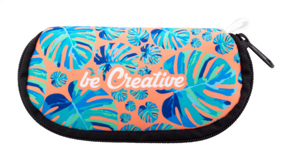 Individuelles Sonnenbrillenetui aus RPET Neopren mit Reißverschluss und vollflächigem Sublimationsdruck, sowie RPET-Label. Der Preis ist inkl. Sublimationsdruck. Mindestmenge: 50 Stk.