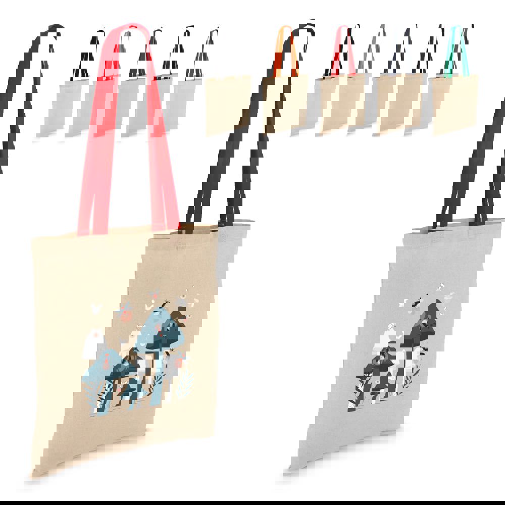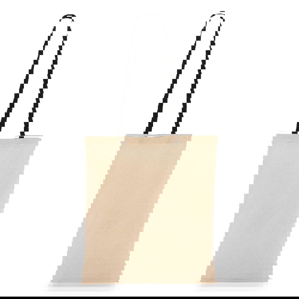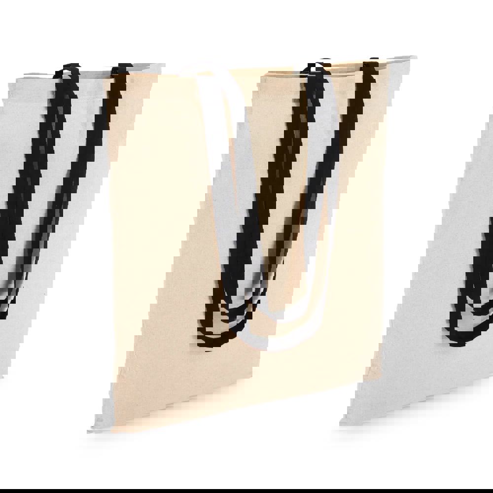 Klassische Tragetasche aus 140 g/m² Baumwolle mit natürlichem Körper und kontrastfarbenen Griffen. Lange Griffe für bequemes Tragen über der Schulter. Oeko-Tex®-zertifiziert. Ideal für Veranstaltungen, den Einzelhandel oder den täglichen Gebrauch.