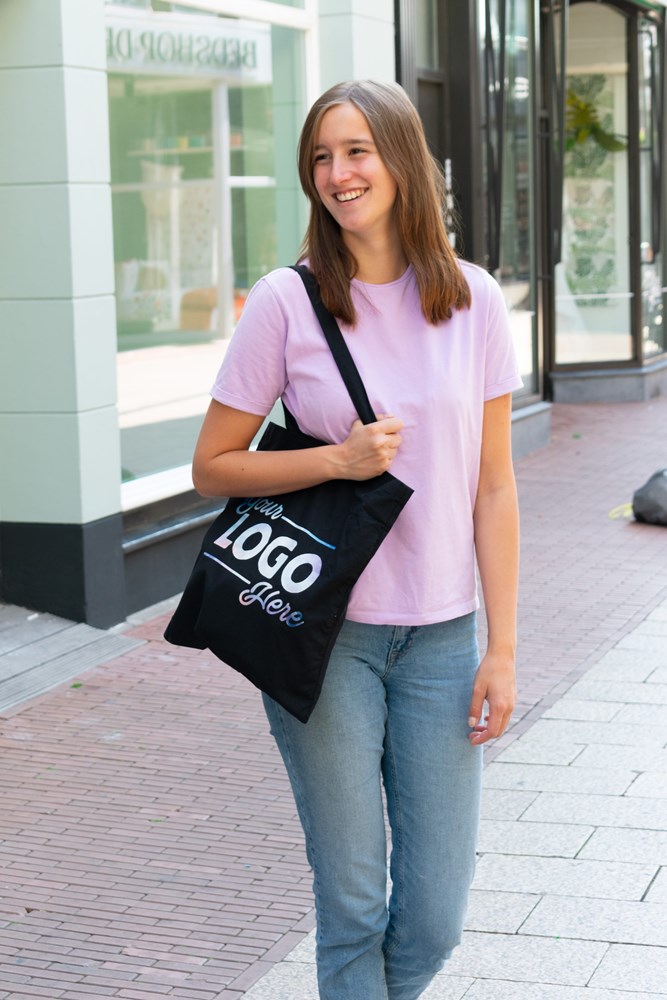 Diese Tasche aus 100% Bio-Baumwolle mit langen Henkeln ist die perfekte Goodie Bag für Veranstaltungen. Die Tasche hat eine Größe von 38x42 cm und eine Grammatur von 135 g/m².
