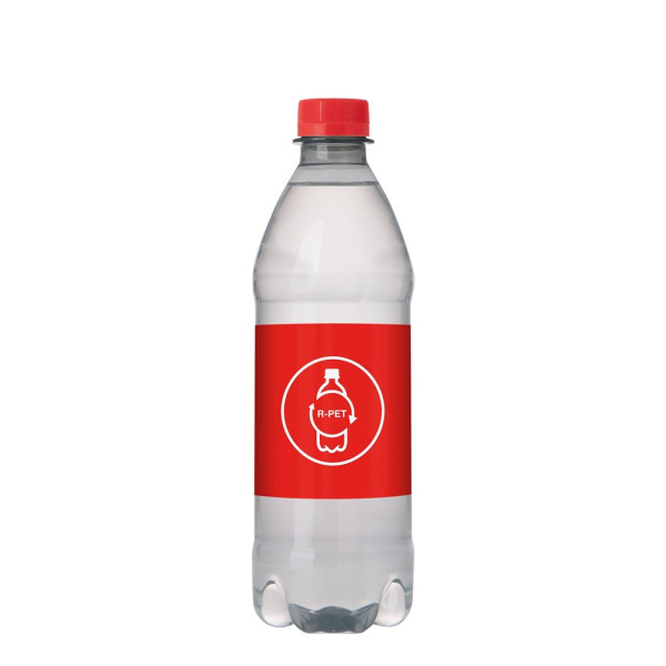 500 ml natürliches Quellwasser in einer transparenten Flasche mit Drehverschluß. Farbe Kappe rot.
