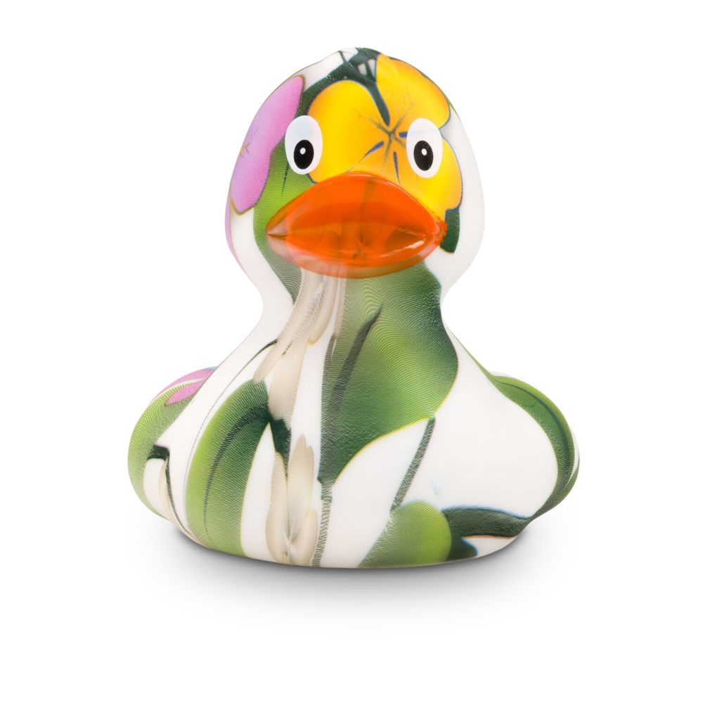 Fiona Flower ist ein wandelndes Blütenmeer. Ihr Gefieder besteht aus einem Strauß an wild blühenden bunten Blumen. Das spezielle Herstellungsverfahren lässt jede Fiona Flower anders aussehen. Eine echte Schönheit eben UND ein Unikat. Mit dieser Ente machen Sie Floristen und Gartenfreunden garantiert eine Freude. Größe: ca. 8 cm. Inklusive Quietschventil