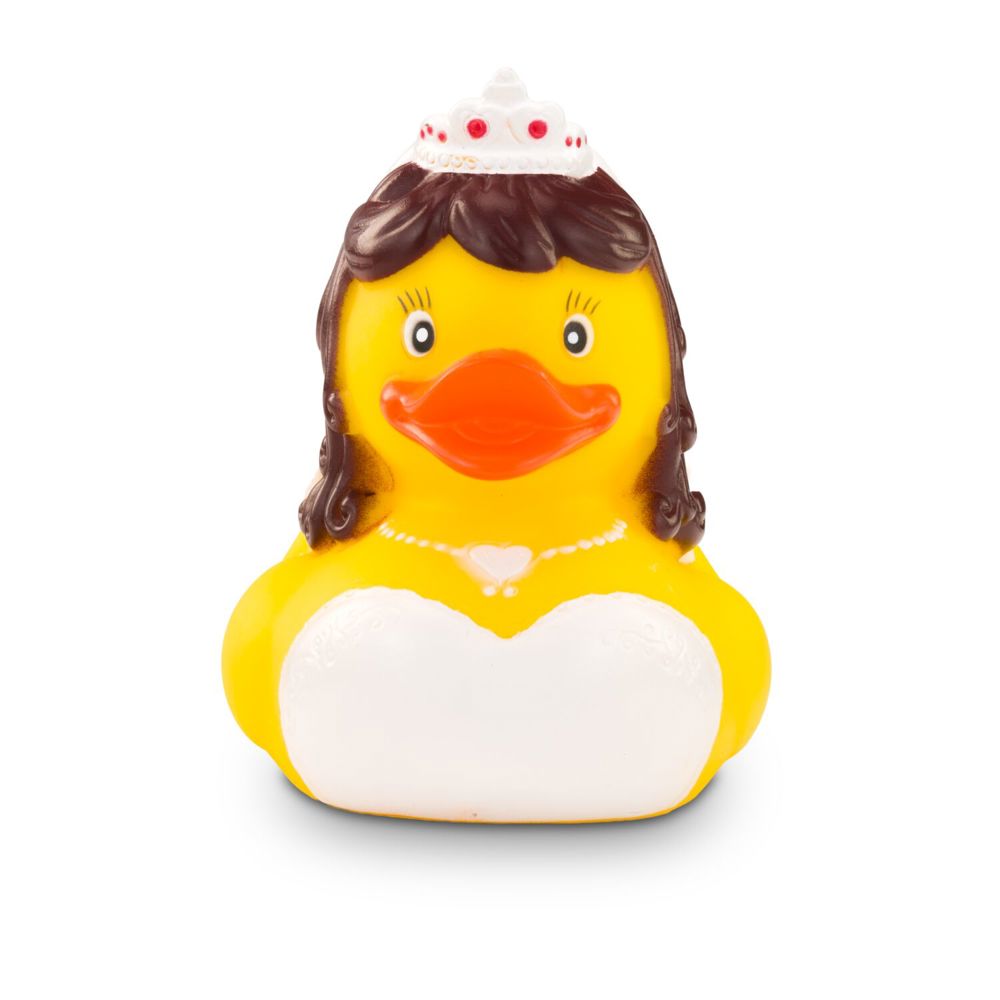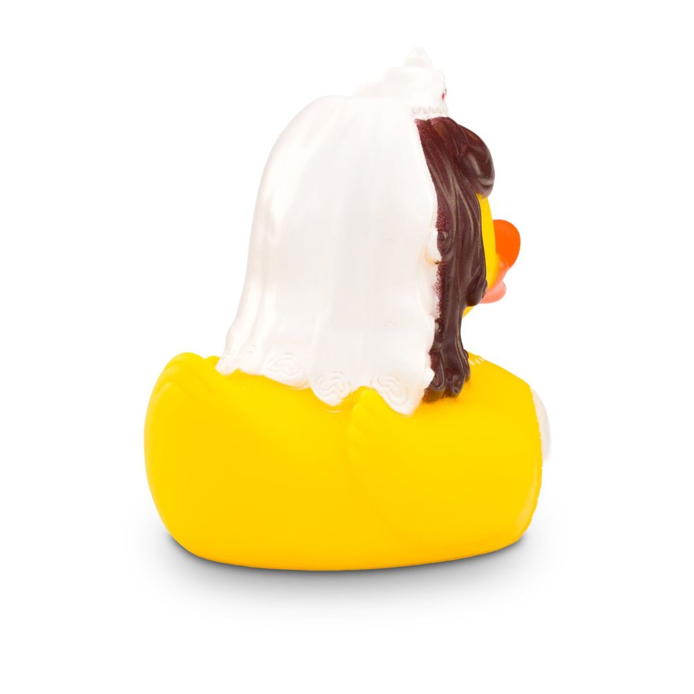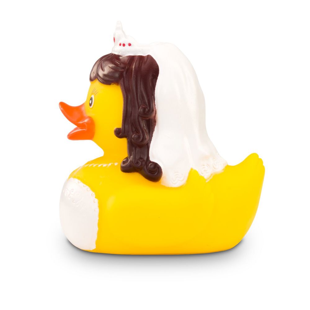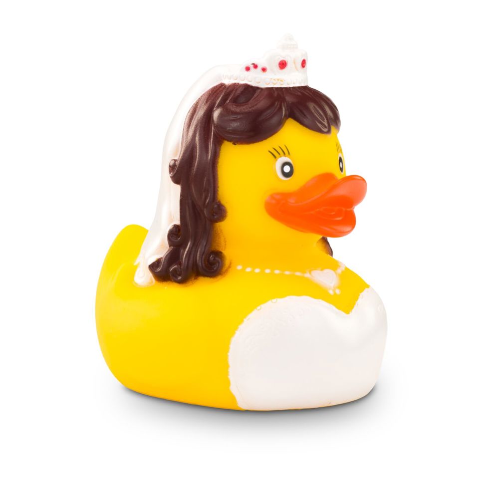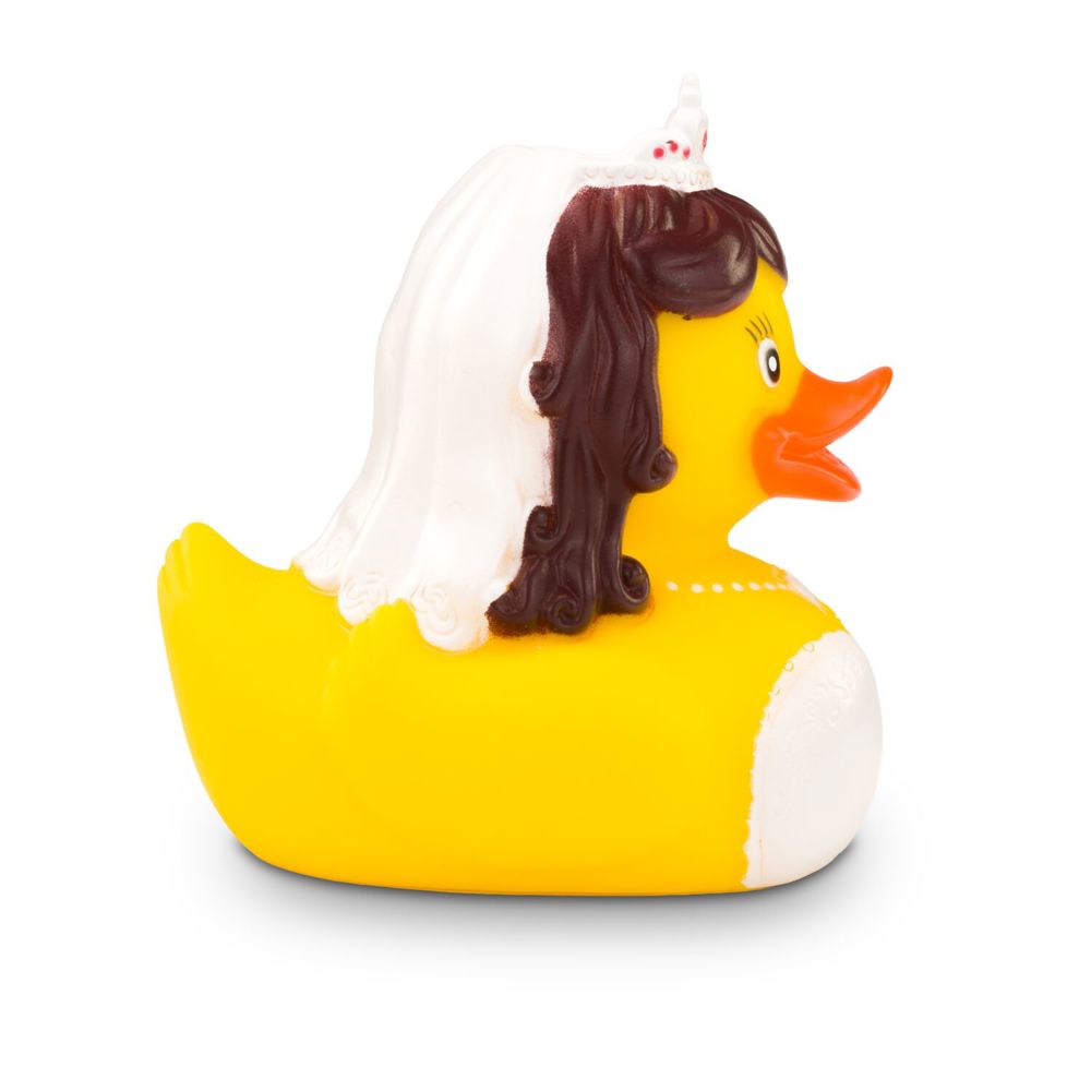 Lasst die Hochzeitsglocken läuten! Barbara Braut hat sich für ihren großen Tag zurecht gemacht und erscheint in einem bezaubernd weißen Kleid mit Spitze, dem passenden Diadem mit pinken Details auf dem Kopf und einer weißen Halskette um den Hals. Sie ist bereit vor den Altar zu watscheln und das Ja-Wort zu geben. Originelle Badeente für Hochzeiten und Junggesellinnenabschiede. Größe: ca. 8 cm. Inklusive Quietschventil