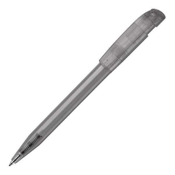 Moderner transparenter Kugelschreiber mit gebogenem Clip. Ein beliebter Werbeartikel wegen seiner... mehr