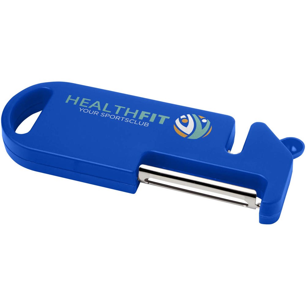 Dieses multifunktionale Küchengerät vereint vier unverzichtbare Funktionen in einem kompakten Design. Gefertigt aus recyceltem Kunststoff bietet es einen Schäler, einen Flaschenöffner, einen Messerschärfer sowie eine Spitze zum Entfernen von Kartoffelaugen. Ein integriertes Aufhängeloch sorgt für einfache Aufbewahrung. Praktisch und platzsparend – ein vielseitiges Must-have für jede Küche.