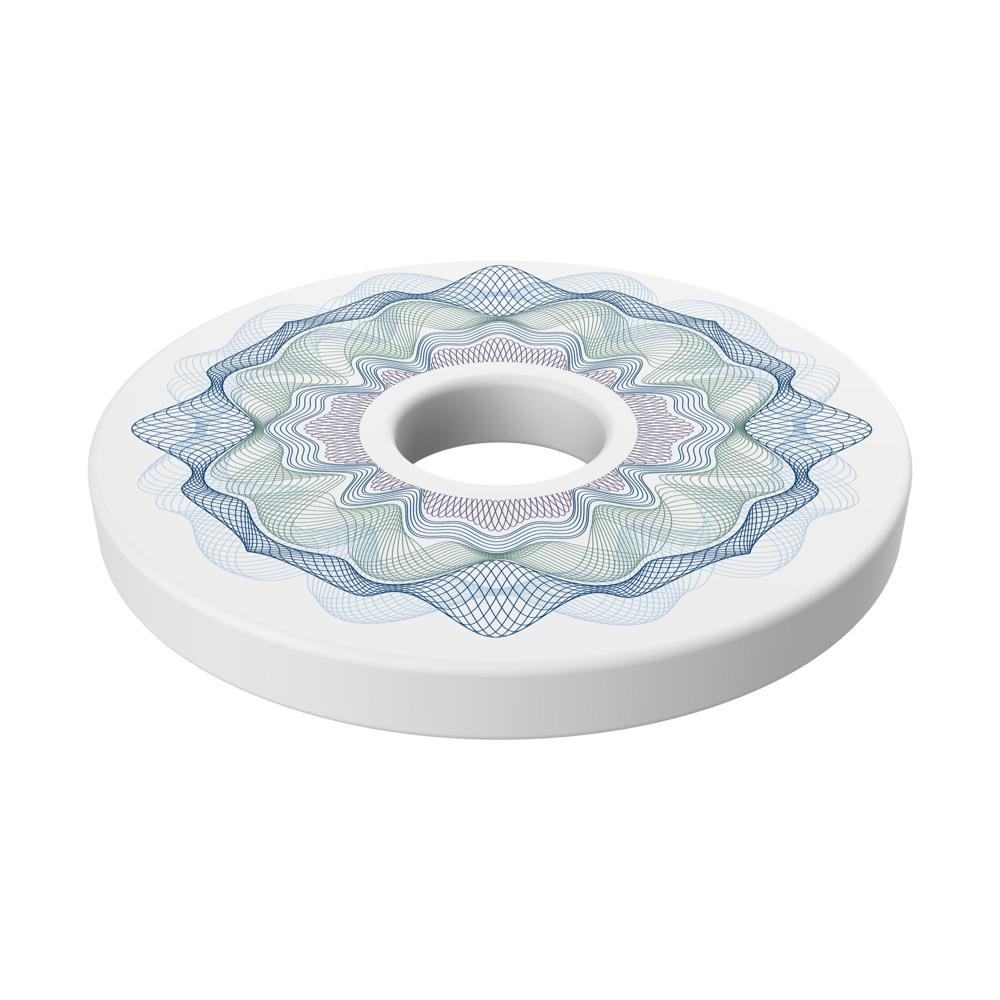 Einfacher Einkaufswagenchip aus Kunststoff mit einem Loch in der Mitte.
