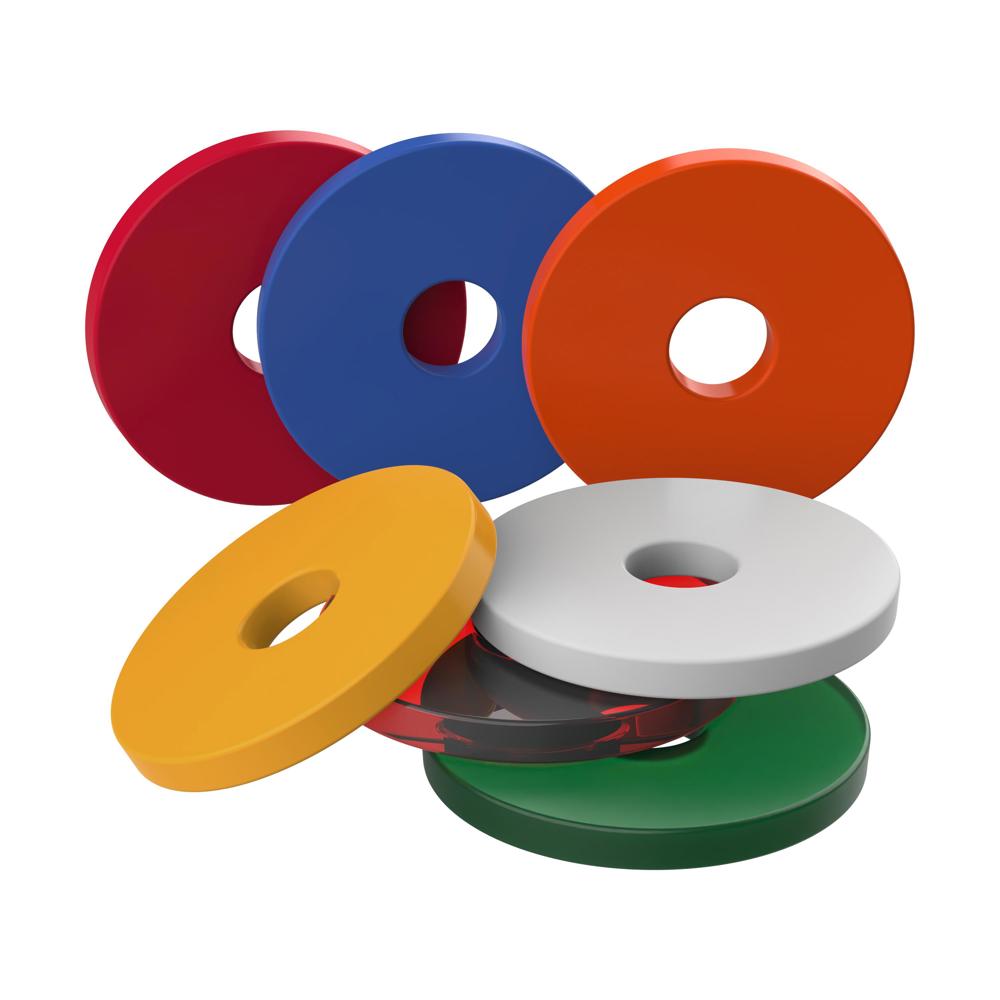Einfacher Einkaufswagenchip aus Kunststoff mit einem Loch in der Mitte. mehr