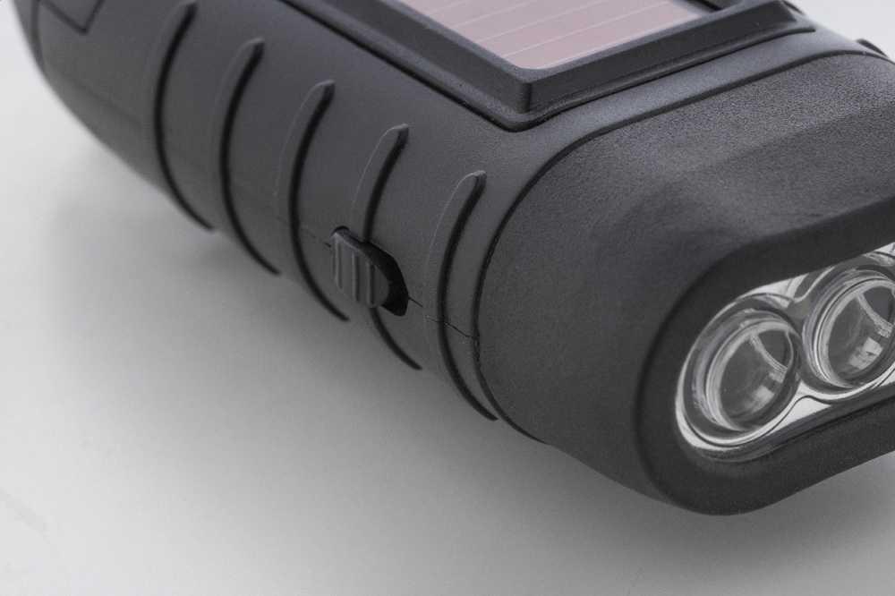 Taschenlampe aus recyceltem ABS mit 3 LEDs, integrierten Solar- und Dynamo-Ladegeräten und... mehr