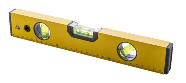 Magnetische Wasserwaage aus recyceltem Aluminium mit dreifacher Libelle (horizontal, vertikal und 45°) und 30 cm Lineal.