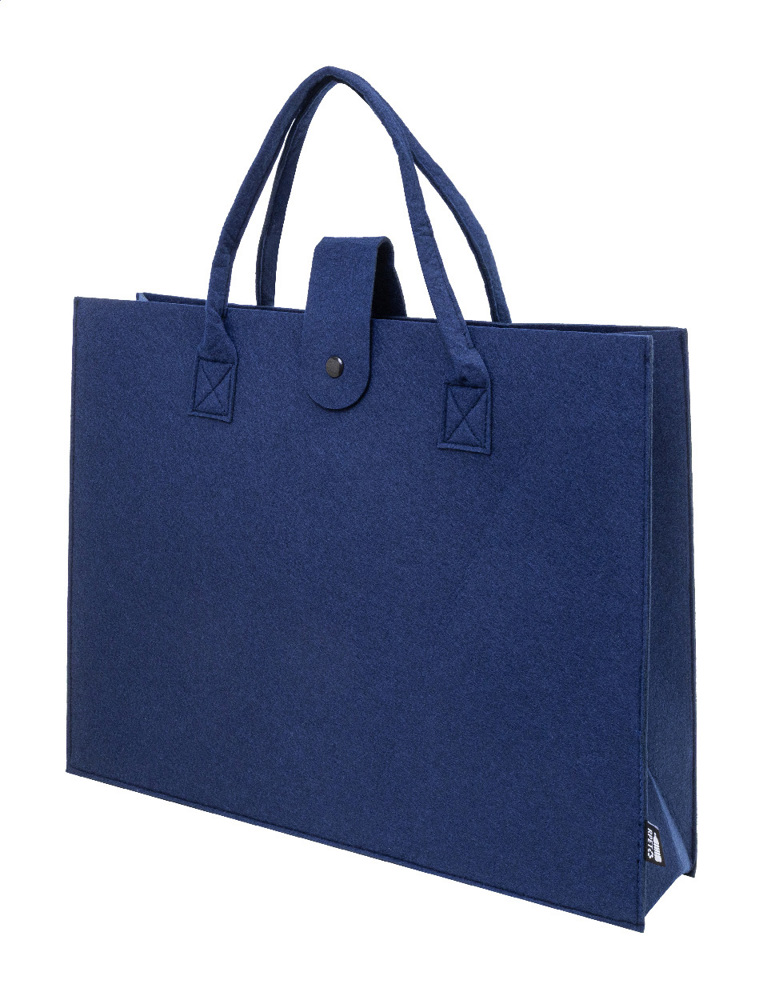 Einkaufstasche aus RPET-Filz mit langen Griffen. Mit RPET-Label.