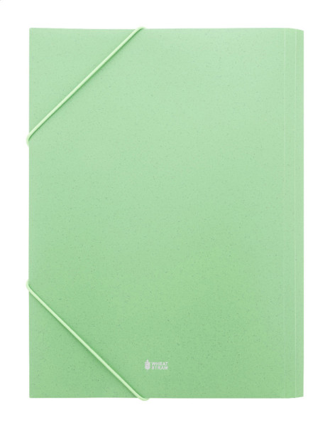 Dokumentenmappe aus ökologischem Weizenstroh-Kunststoff mit elastischen Bändern.