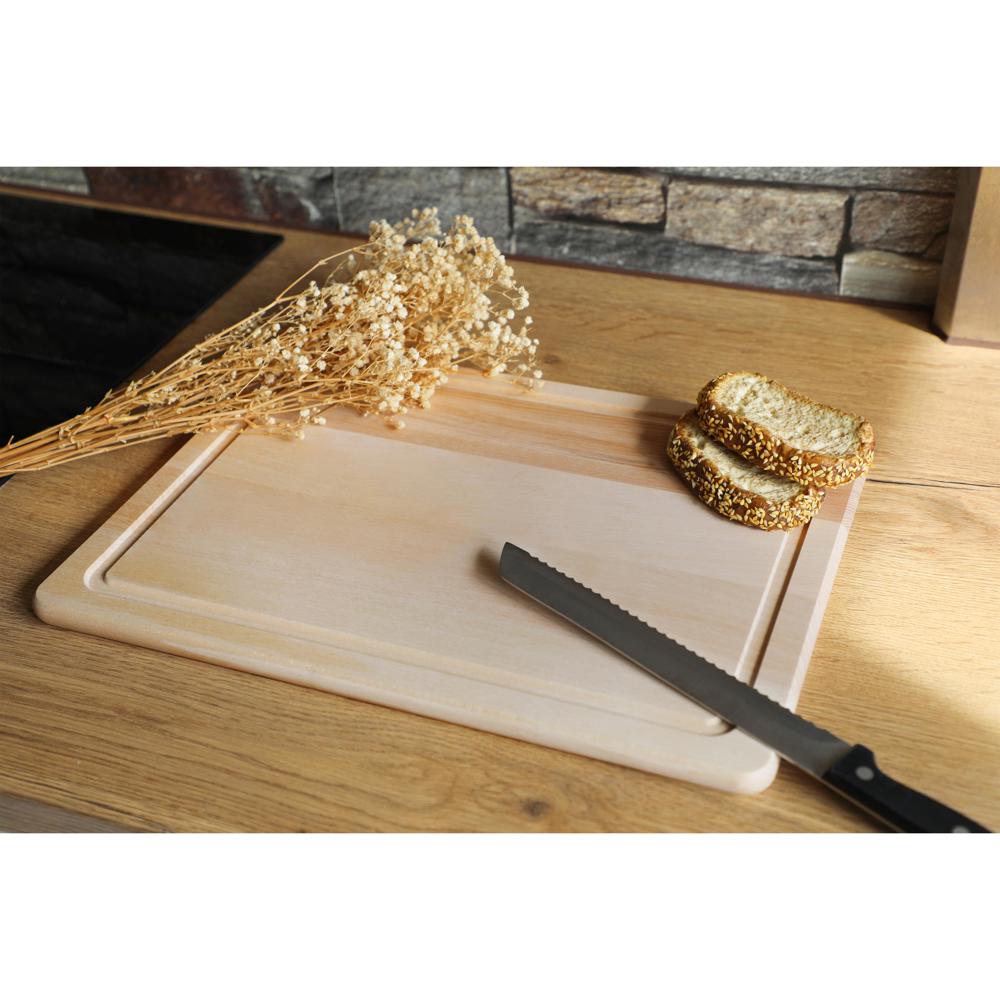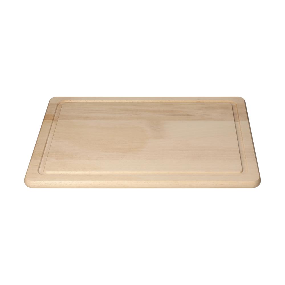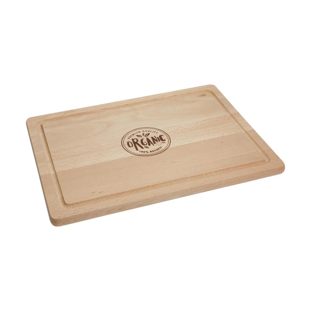 Da passt ganz schön was drauf. Riesiges Schneid- oder Brotzeitbrett aus 15 mm starkem Buchenholz (unbehandelt). Mit gefräster Rille am Rand gegen Herunterfließen von Flüssigkeiten. Ausschließlich von Hand spülen.