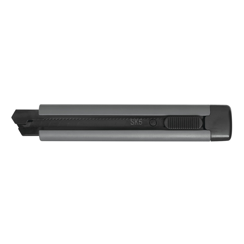 Cuttermesser RELIABLE: mit beweglicher, schwarzer 18 mm Abbrechklinge (10 Klingenabschnitte und 2 Ersatzklingen), Klingenvorschub mit Gleiter und Auto-Stopp, Kunststoffgehäuse, Klingenführung aus Stahl, für leichte bis schwere Schneidearbeiten, in Box