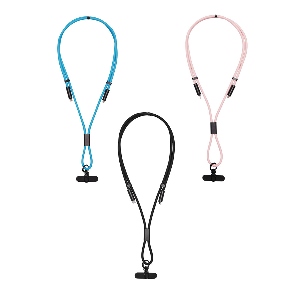 Lade- und Datenkabel MOBILE CARRY: zum Aufladen von Smartphones und USB-betriebenen Geräten, inkl. Laptops (65 W Leistungsübertragung), sowie zum Übertragen von Daten, inkl. 2 Ladesteckern (USB Typ C), Kabellänge ca. 144 cm, Lade- und Datenkabel ist gleichzeitig Handykette, mit Halteplättchen zum Platzieren zwischen Smartphone und Handyhülle (nur geeignet für Hüllen, die einen umlaufenden Schutz bieten), in der Länge verstellbar (zum Tragen über die Schulter oder um den Hals), inkl. Karabinerhaken (der Karabiner ist NICHT als Sicherung beim Klettern geeignet)