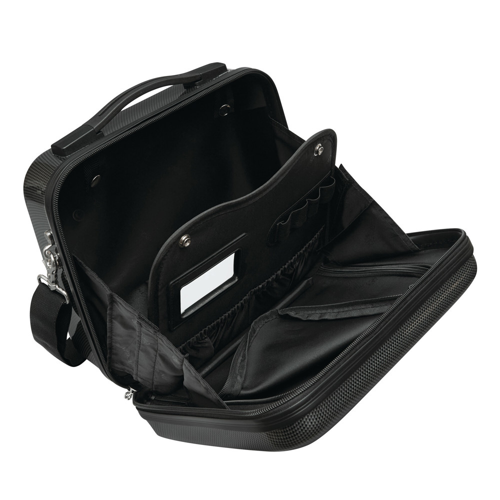 Kosmetikkoffer LONDON 2.0: exklusive Ausstattung und Design, beidseitige Packmöglichkeit, Hauptfach mit flexibler Trennwand inkl. Spiegel, diverse flexible Schlaufen und Einstecktaschen mit Gummizug, entnehmbare Reißverschluss-Innentasche, abnehmbarer und verstellbarer Schultergurt, aufsteckbar auf Trolleysystem, inkl. beigefügtem Zahlenkombinationsschloss