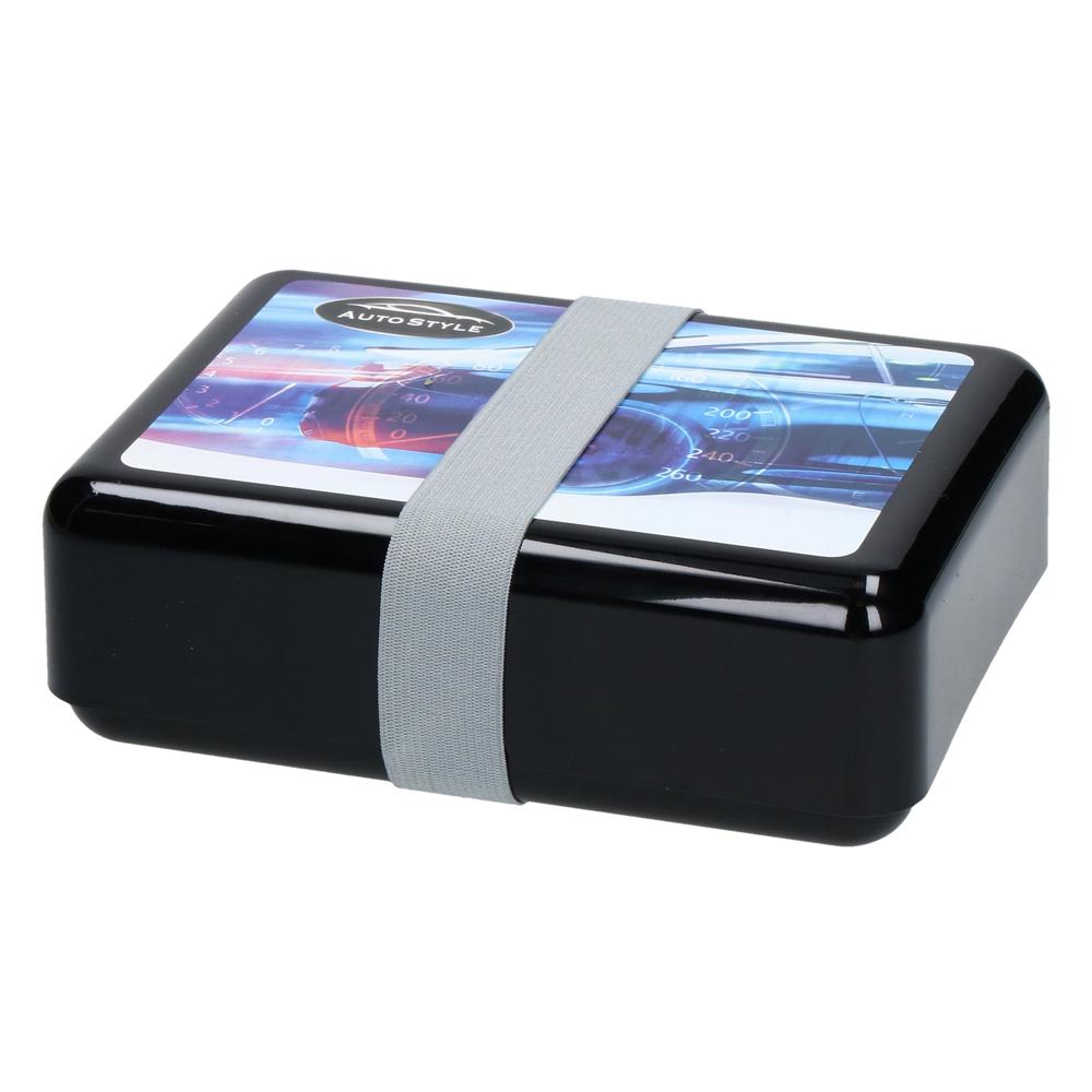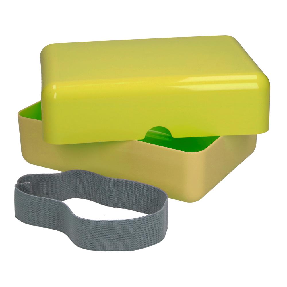 Fast schon ein bisschen Retro, aber voll im Trend. Tolle, geräumige Brotzeitdose bestehend aus zwei eckigen Schalen, die mittels Elastikband (65 % Polyester, 35 % Latex) zusammengehalten werden. Der Deckel kann komplett über das Unterteil gestülpt werden, ist aber durch die seitlichen Aussparungen leicht abzunehmen. IMould-Veredelung möglich.