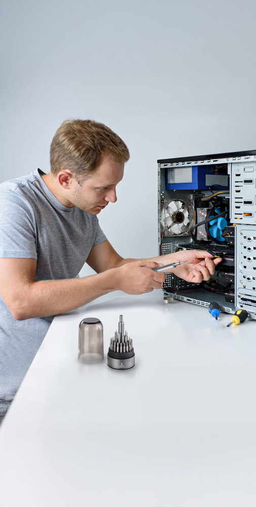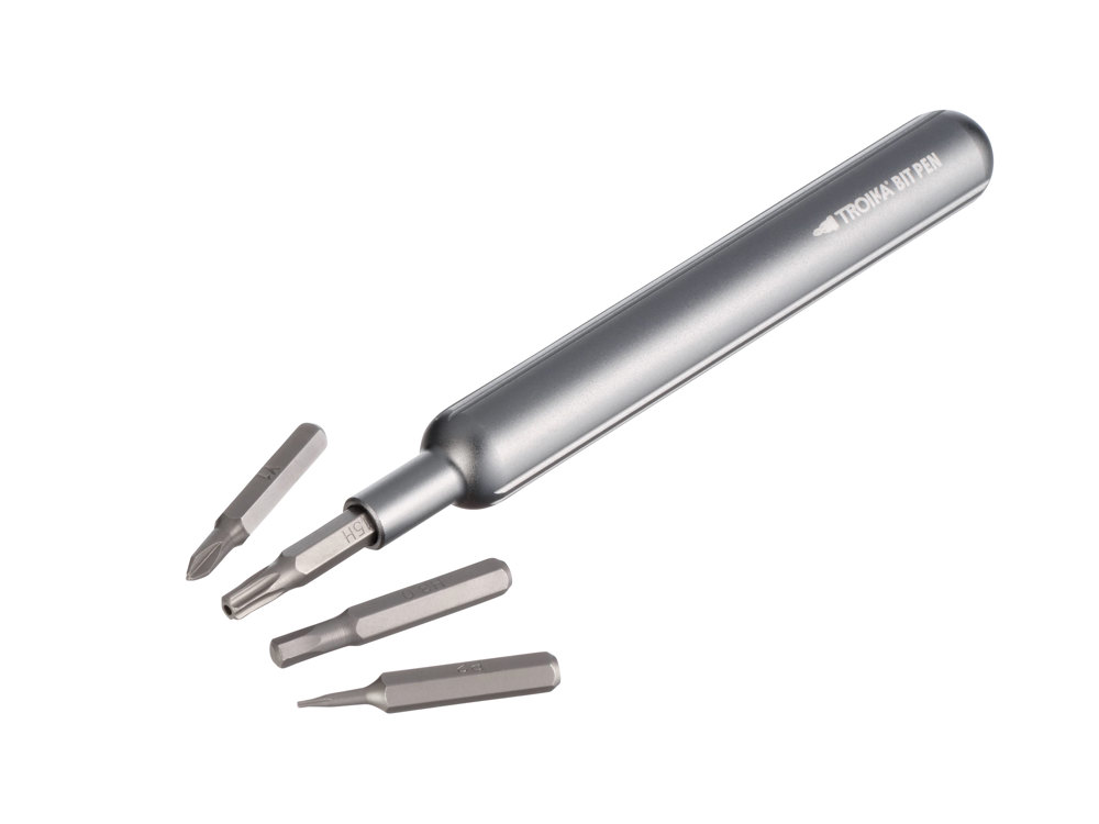 Bit Pen Werkzeug-Set mit 30 Präzisions-Bits und magnetischem Bithalter, einfaches Verstauen aller Bits im Sockel, geeignet für Reparaturen im Haushalt, z. B. Küchenwaage, LED-Lichterkette, Fernbedienungen etc., rutschhemmender Silikonboden für Standfestigkeit und besseren Grip, Aluminium, Chrom-Vanadium-Stahl, Silikon, matt, grau
