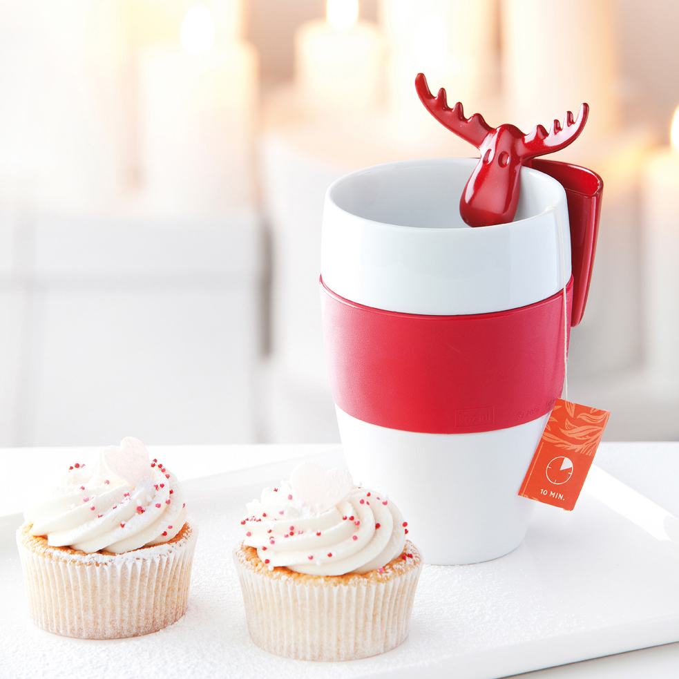 In der Weihnachtszeit schaut RUDOLF nur zu gerne über den Tassenrand. Das originelle Utensilo wird einfach am Tassenrand eingehängt und serivert Teebeutel, Zuckerwürfel oder einen Keks.