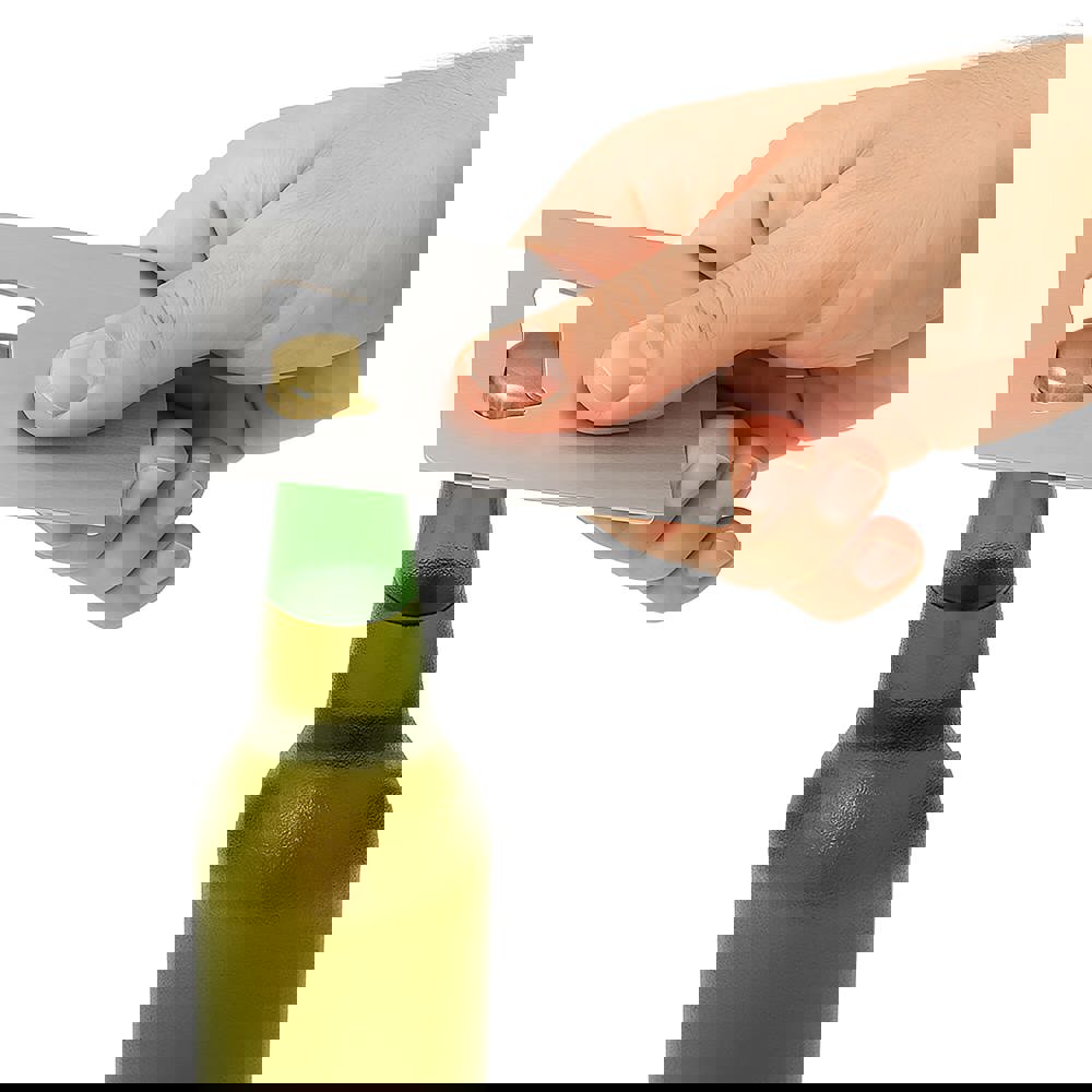 Schlanker, kreditkartenförmiger Flaschenöffner mit viel Platz für Ihr Branding. Leicht zu transportieren und ein nützlicher Werbeartikel, der Ihre Marke in greifbarer Nähe hält.