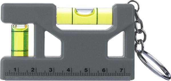 Schlüsselanhänger aus recyceltem ABS mit Magnet-Wasserwaage und Größenangabe auf der Vorderseite.... mehr