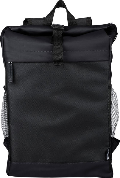 Dieser Rucksack ist aus rPET (600D) Polyester mit PU-Beschichtung zur Wasserabweisung gefertigt. Er verfügt über eine versteckte Reißverschlusstasche auf der Vorderseite, ein gepolstertes Laptop-Fach für Geräte bis 15 Zoll, seitliche Netztaschen sowie insgesamt fünf Fächer, darunter Innen- und Vordertaschen. Er verfügt über verstellbare Tragegurte und bietet ein Fassungsvermögen von 25 Litern und eine Tragfähigkeit von 15 kg. Er verfügt über ein rPET-Etikett an der Seite und ein individuelles Etikett auf der Innenseite.