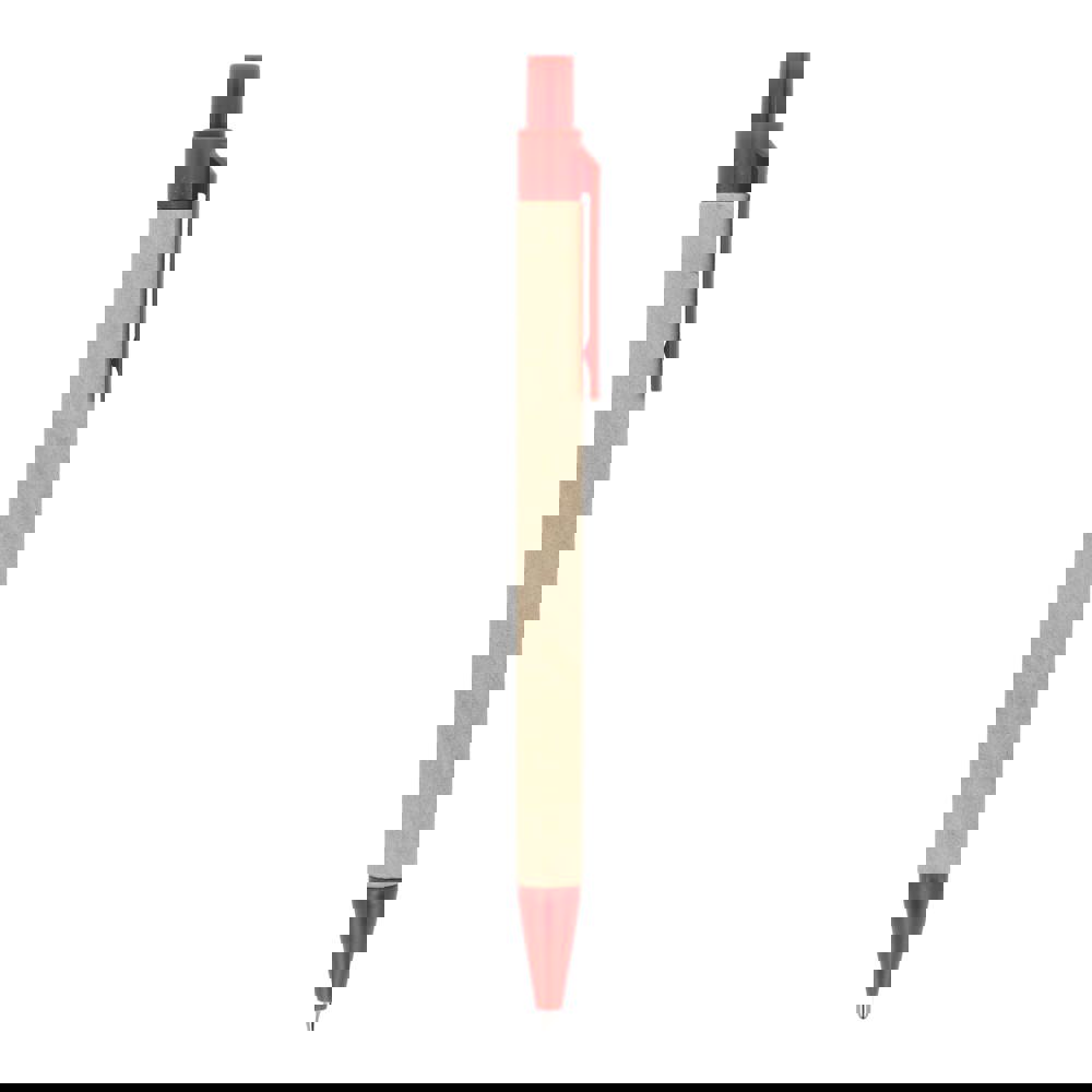 Papierkugelschreiber mit farbigen Kunststoffteilen aus recyceltem Material. Mit blauer Schreibmine.