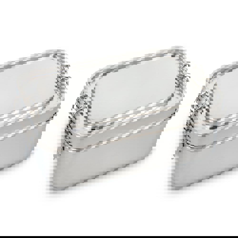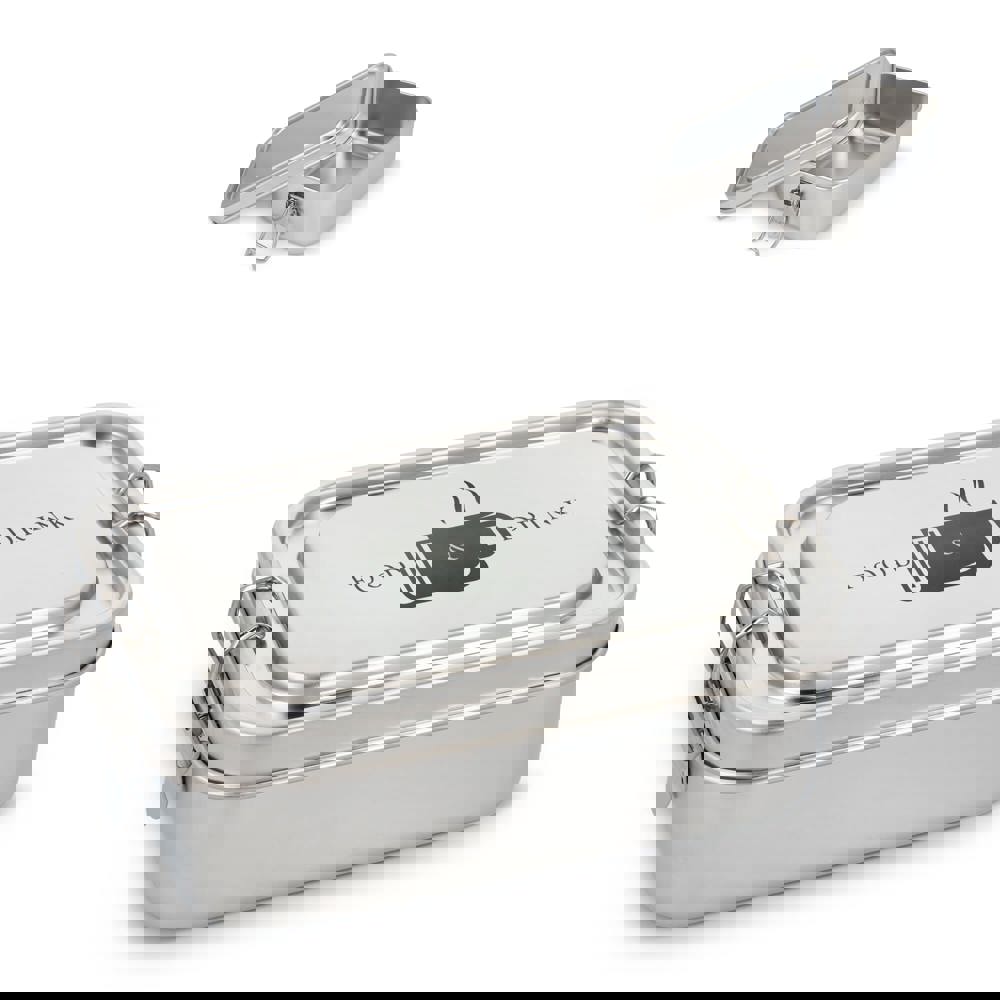 Solide Edelstahl-Brotdose mit verschließbarem Deckel. Jede einzeln in einer Geschenkbox verpackt. mehr