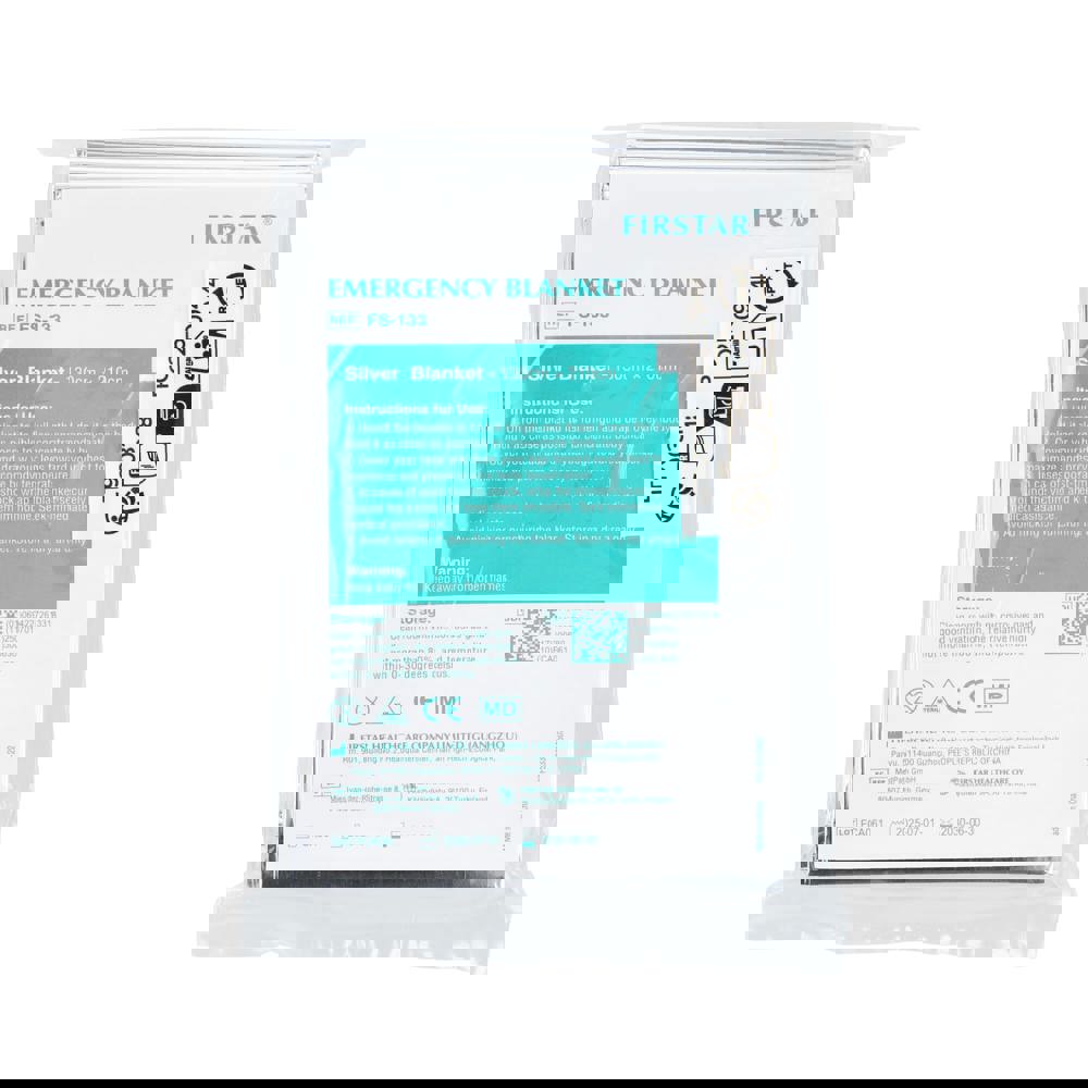Notfalldecke aus PET-Folie, die dazu dient, die Körperwärme zu speichern und in Notfällen vor Unterkühlung zu schützen. Sie ist leicht und kompakt und lässt sich einfach in Erste-Hilfe-Kästen oder Rucksäcken verstauen. Ideal für Outdoor-Aktivitäten, Reisen und Notfallvorsorge. Entspricht den europäischen Normen.