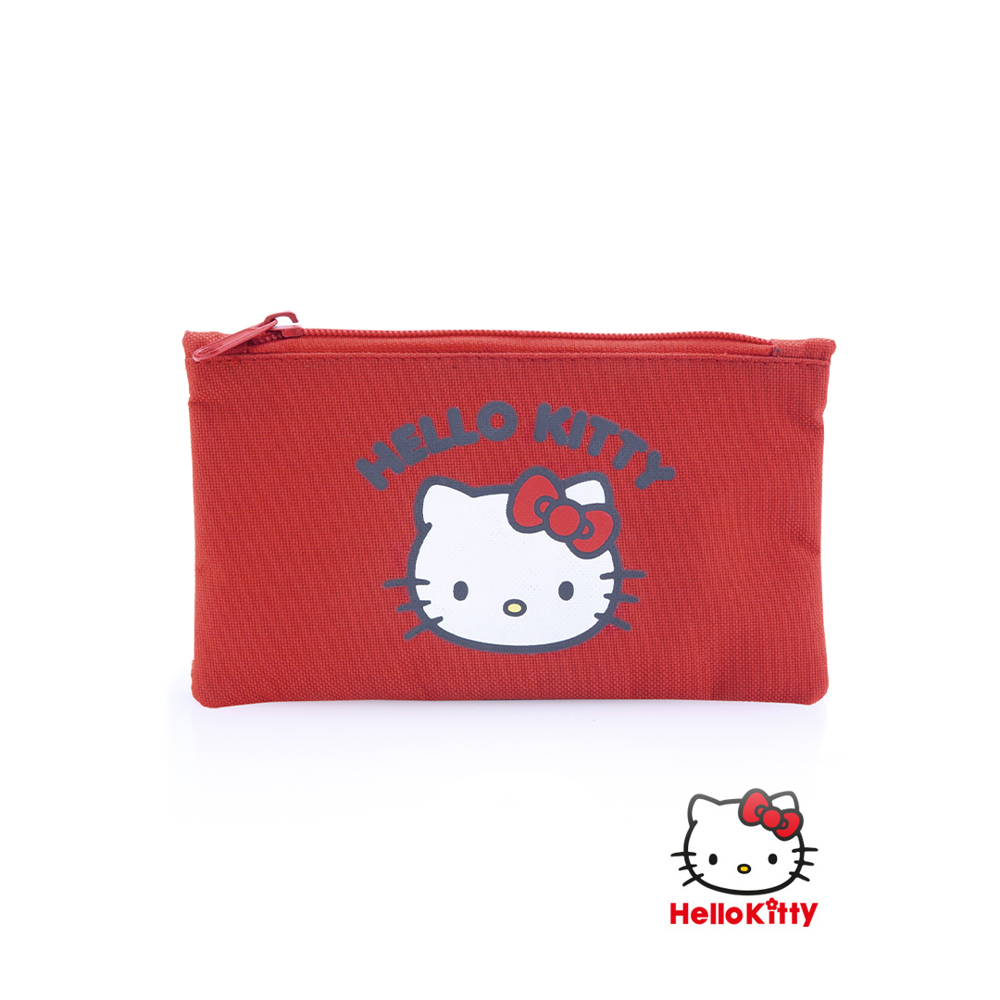 Etui von Hello Kitty aus robustem 600D Polyester mit der Katze der Marke. Mit Reißverschluss und farblich passendem Griff.