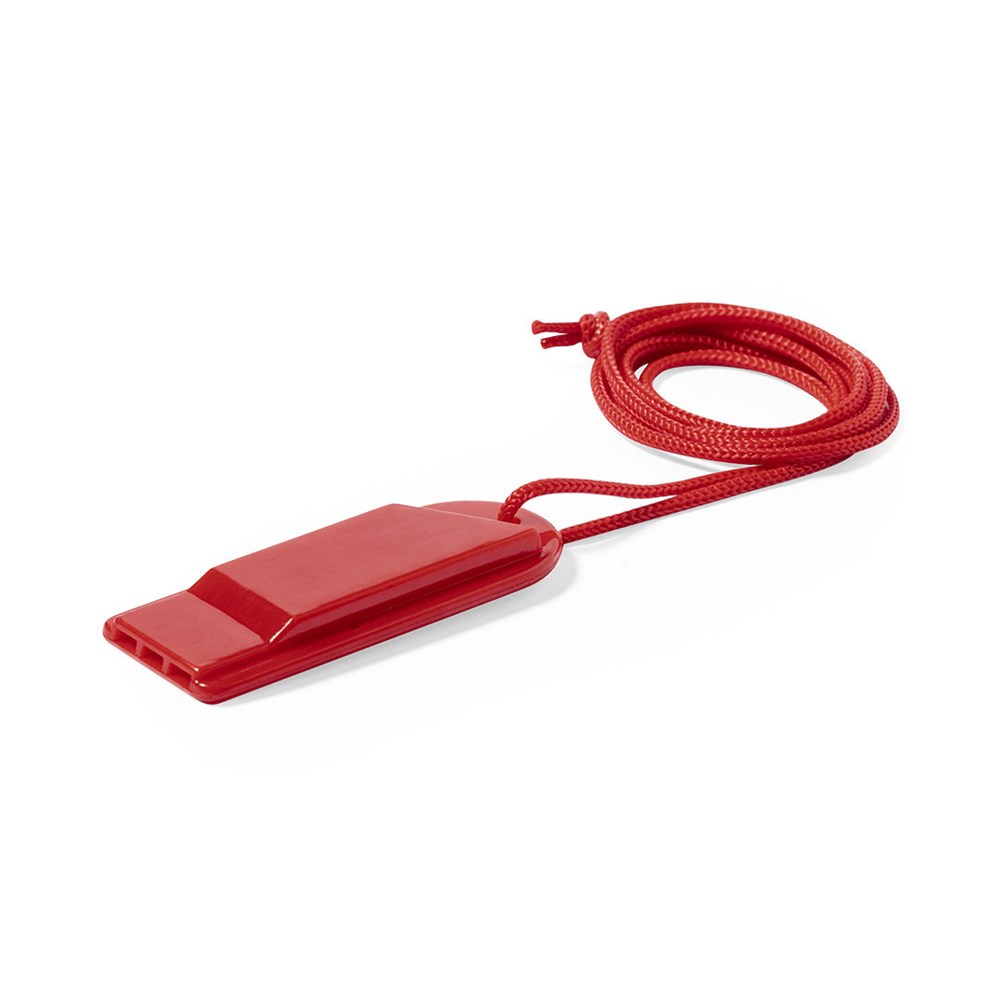 Pfeife im unverwechselbaren Design und aus strapazierfähigem PS. Mit farblich passendem Umhängeband und in vielen Farben erhältlich.