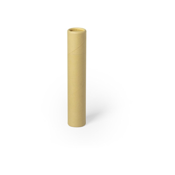 Set aus 5 Teilen in recycelter Pappschachtel. Enthält 2 Holzkugelschreiber (nicht angespitzt) mit zylindrischem Körper und Naturfinish, einen Kugelschreiber aus Karton, einen Holzspitzer und einen Radiergummi.