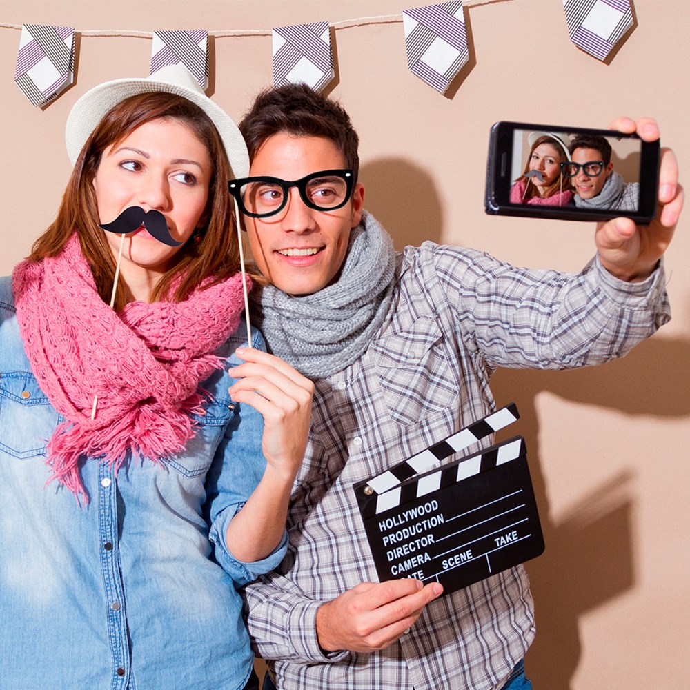 5-teiliges Selfie-Set mit Hut, Pfeife, Schnurrbart, Fliege und Brille. Hergestellt aus Pappe mit... mehr
