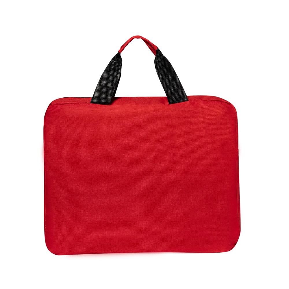 Dokumententasche mit Reißverschluss aus angenehm weichem 600D Polyester in lebendigen Farben. Mit farblich passenden, verstärkten Tragegriffen und Fronttasche mit Klettverschluss für Smartphone.