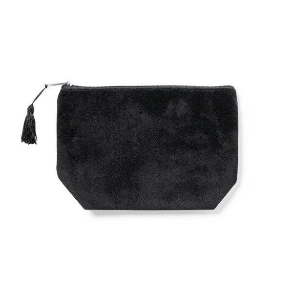 Kosmetiktasche aus Samt, mit Reißverschluss und Quaste am Griff. Hergestellt aus Rayonsamt und... mehr