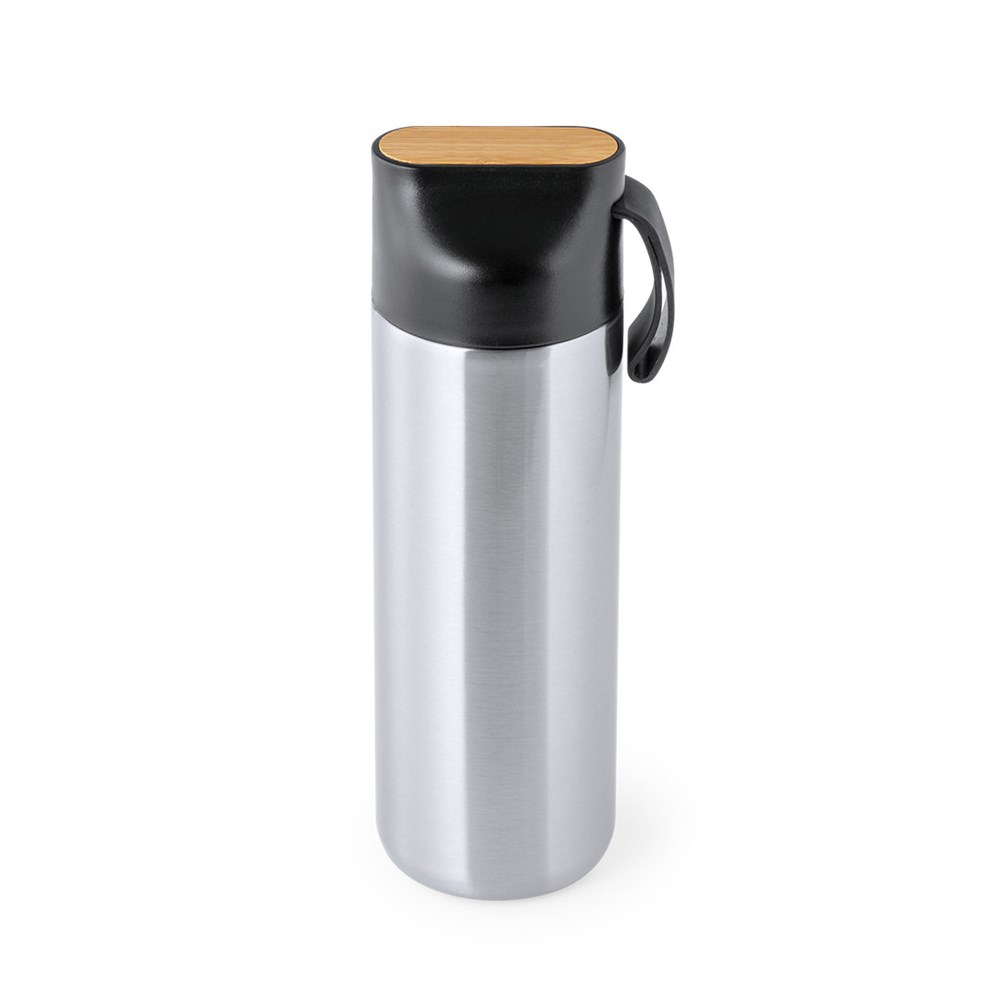 Elegantes Premium-Set, bestehend aus:Doppelwandiger Thermobecher aus rostfreiem Stahl. 640 ml Fassungsvermögen, mit Bambusfläche auf dem Deckel für das Branding. Weicher PU-Notizblock mit integriertem Smartphone-Halter auf dem Deckel und Bambusfläche für das Branding. Inklusive Gummiverschluss, Lesezeichen und farblich passendem Stifthalter. Innen mit 80 Einstreifen-Layoutblättern. Aluminium-Kugelschreiber in matter Ausführung mit Bambusfläche für das Branding, Drehmechanik und blauer Tinte. Präsentiert in einem individuellen, mattierten Etui mit Magnetverschluss, einschließlich Innenstanzung für jedes Element des Sets.