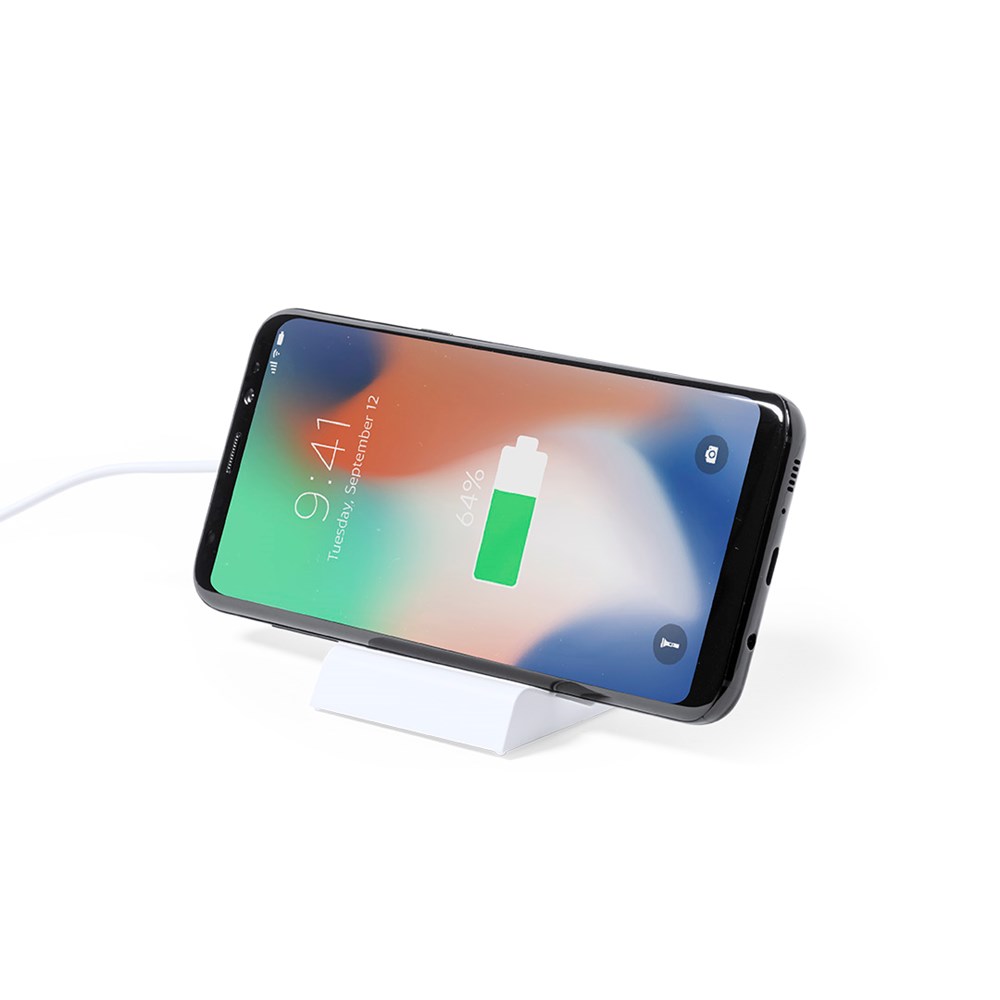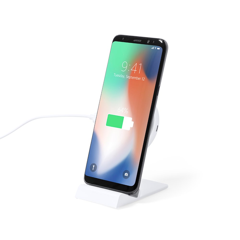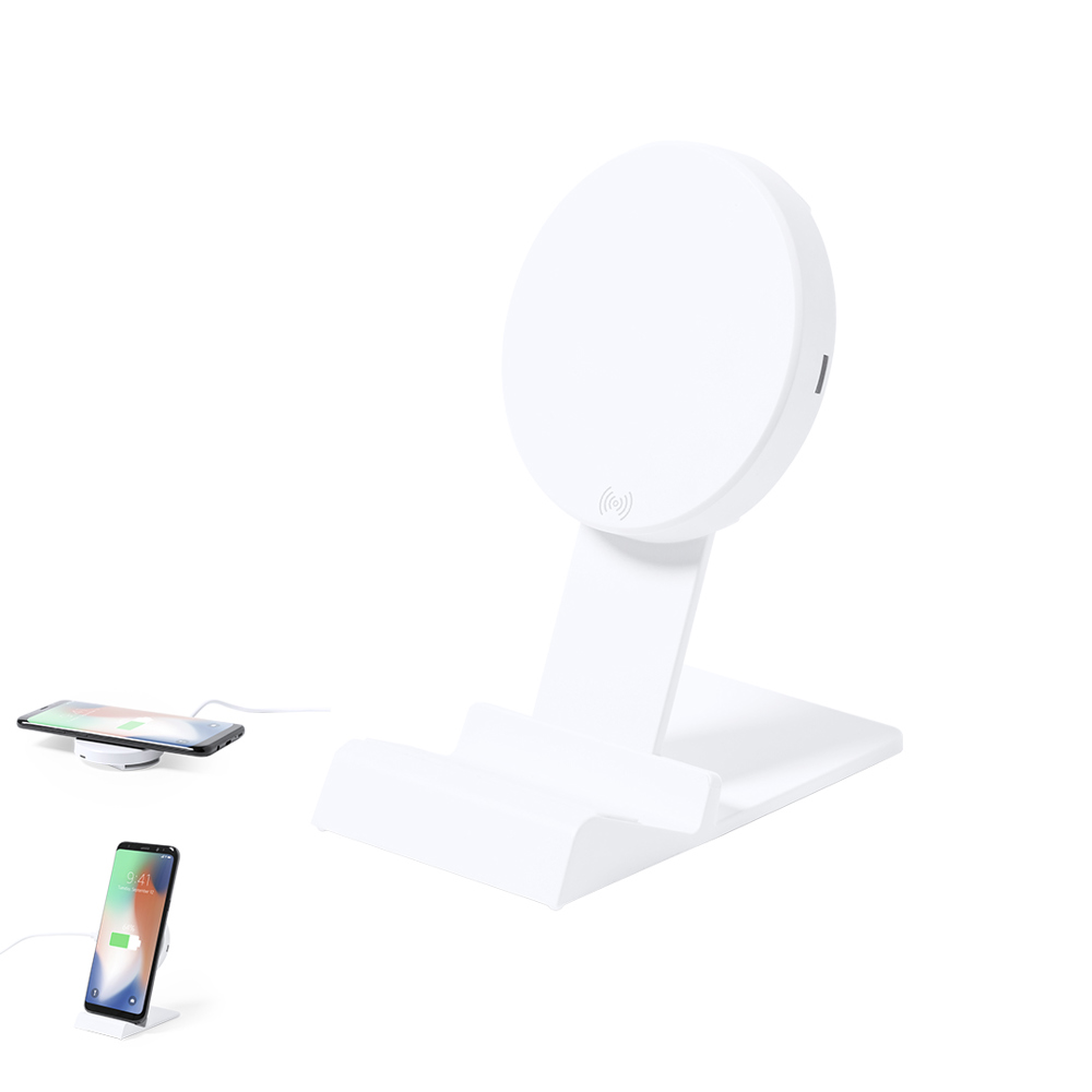 15W kabelloses Schnellladegerät. In eleganter weißer Ausführung, mit höhenverstellbarer Ladestation und Smartphone-Standfunktion. Kompatibel mit Geräten die mit kabelloser Ladetechnologie ausgestattet sind. Ladekabel Typ C im Lieferumfang enthalten, mit großer Beschriftungsfläche und präsentiert in ansprechender Designbox.Bereitstellungsanleitung Handbuch in Spanisch und Englisch.In Übereinstimmung mit den Sicherheitsanforderungen:Überhitzungsschutzsystem.Überlastschutzsystem.Sperrsystem zur Vermeidung von Kurzschlüssen.