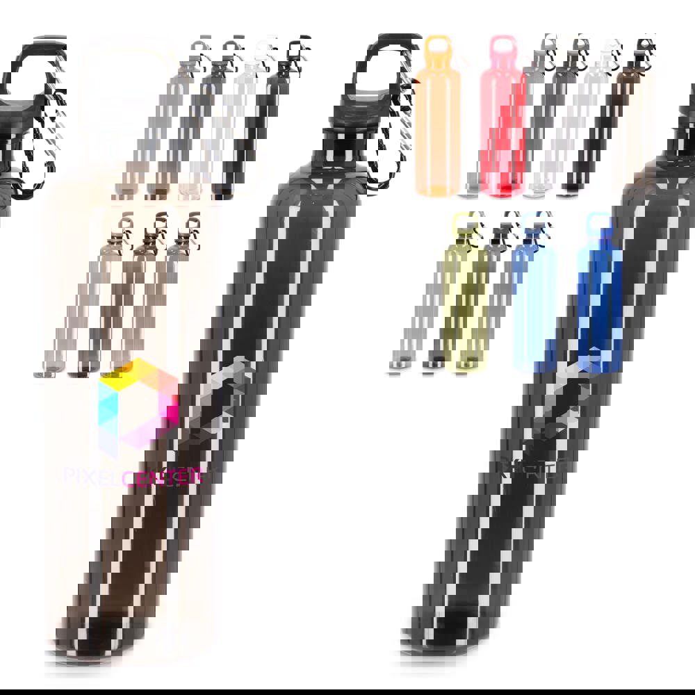Mit dieser 750-ml-Wasserflasche aus R-PET mit transparentem Finish bleiben Sie stilvoll und nachhaltig hydriert. Ausgestattet mit einem praktischen Karabiner, ist es perfekt für die Befestigung an Rucksäcken, Handtaschen oder Sporttaschen. Erhältlich in einer Reihe von satten Trend- und Werbefarben.