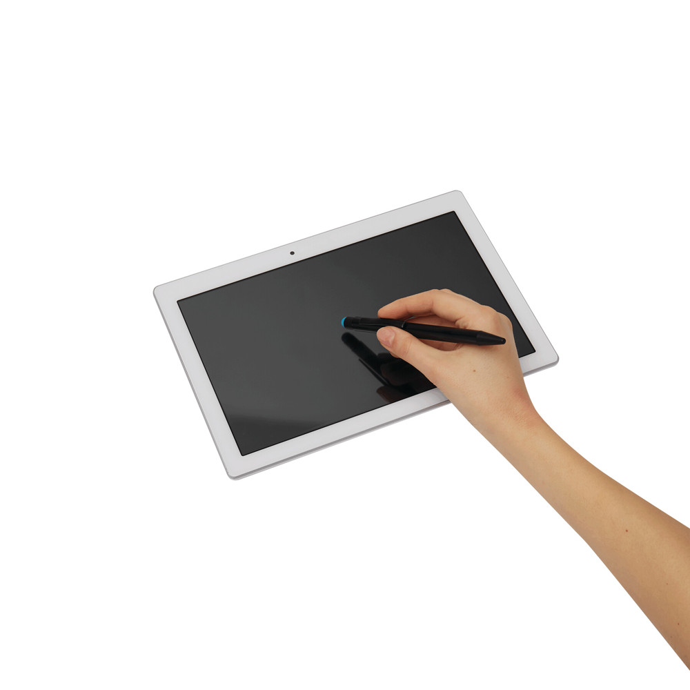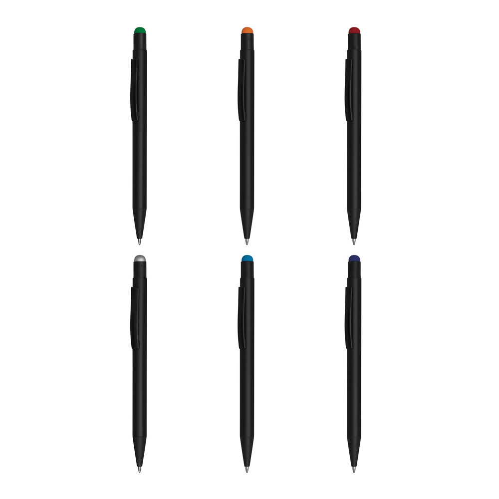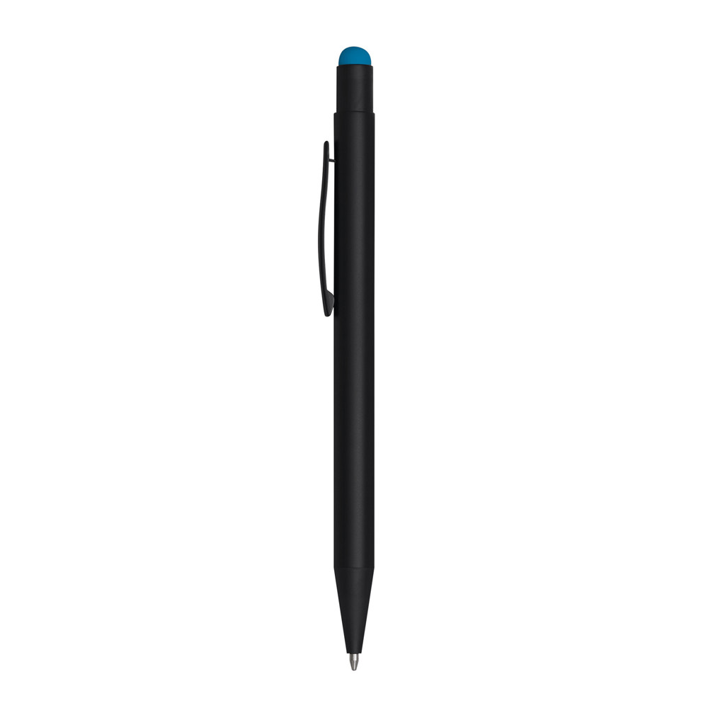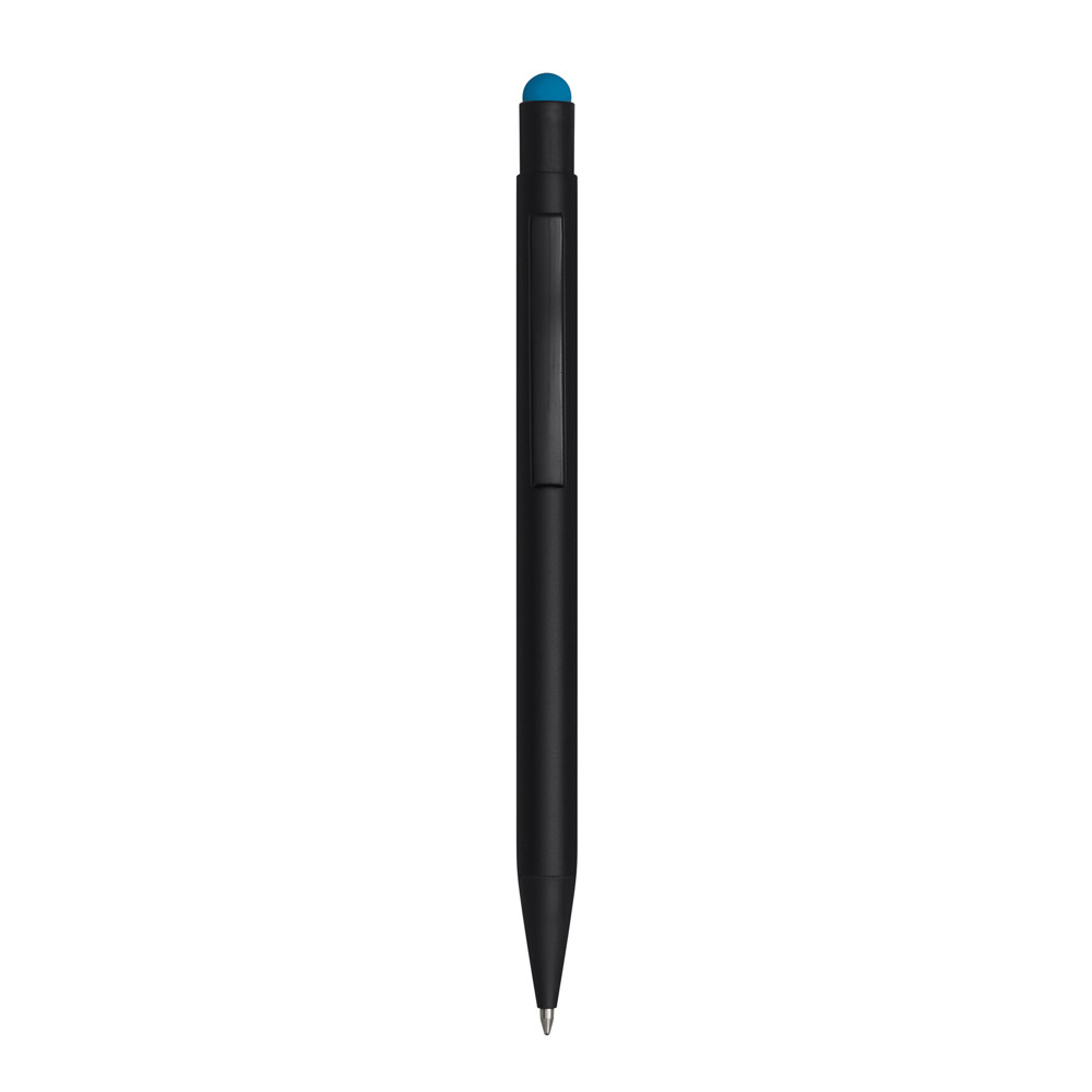 Alu-Kugelschreiber BLACK BEAUTY, mit Großraummine, Touchscreen-Spitze zur Bedienung von Smartphones und Tablets, matte Oberfläche mit farbiger Unterlegung für eine Gravur passend zur Farbe der Touchscreen-Spitze, blauschreibend